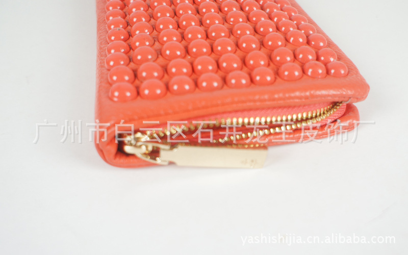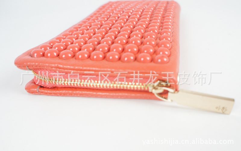 此款漆皮錢包,采用當下較為流行的鉚釘風格,是一款時尚而實用的女士長款錢包。尺寸:19.5*10.5*2.5 cm,