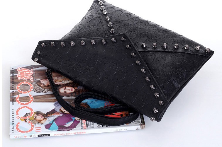 可混批 信封街頭潮包自主品牌廠傢直銷 壓花包 女士手拿包 骷髏女