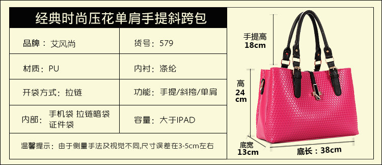 阿伊凡包包美約新款女包潮韓版撞色壓花三夾層單肩包手提斜跨包大