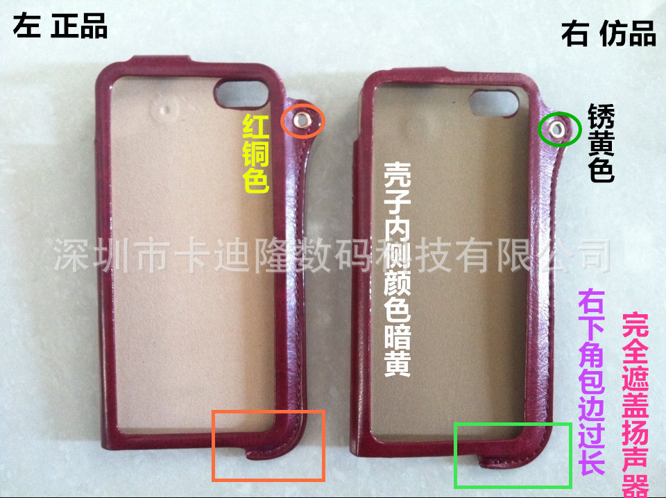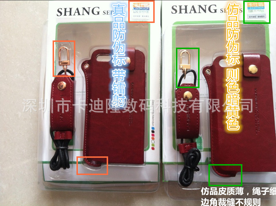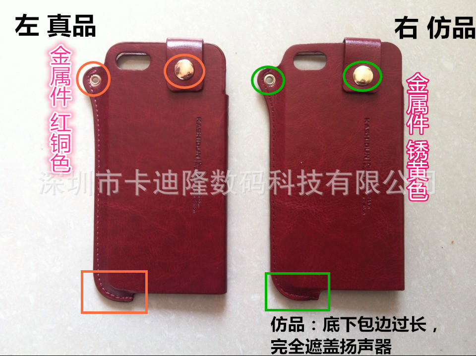 另有一款高仿產品,皮套上也是打著卡仕盾字號,真假對照圖供買傢比對