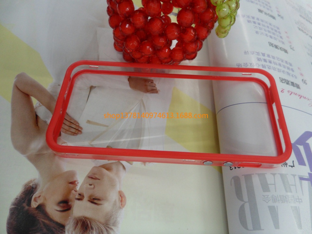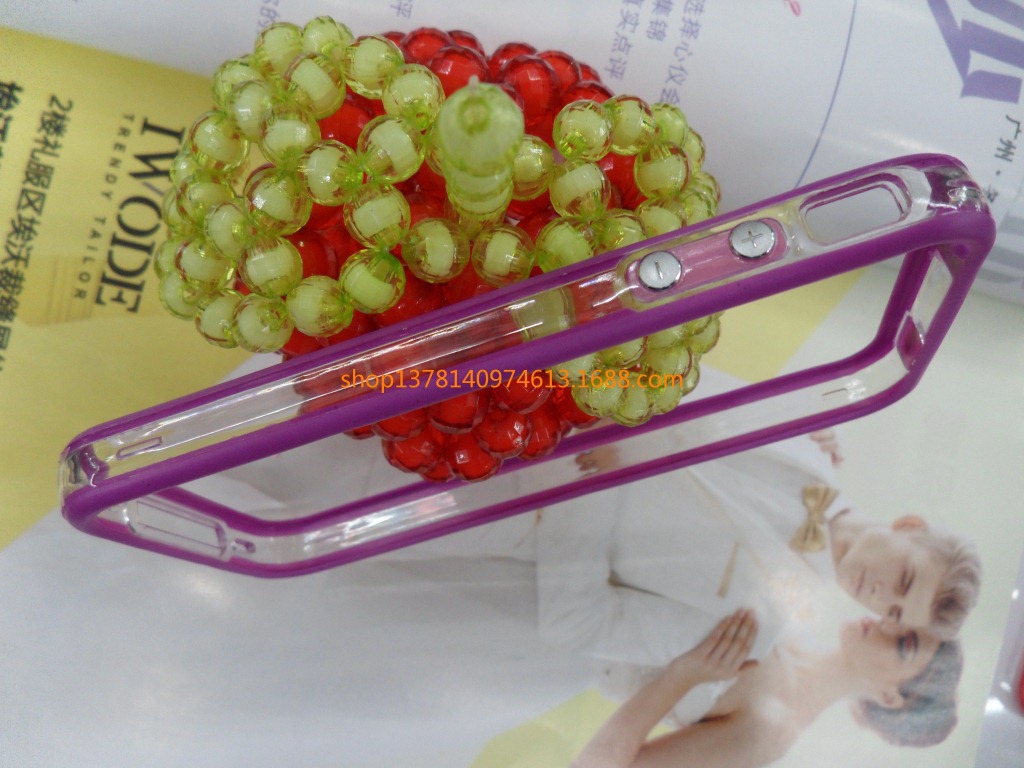 <外單出貨,品質保障 歡迎選購,歡迎對比! 超值蘋果 iphone 5 Bumper 炫彩外殼 矽膠手機套 最經典6色可選 國產BUMPER,非常的超值! 擁有與美國原裝99%相似的Bumper,心疼支付398RMB購買真正原裝的玩傢,購買 像真度極高的Bumper是最理想的選擇 無論遠看 近看都難分真假!! 橫空出世 創世紀的一圈金屬中框設計 可不僅僅隻是為瞭美觀 而是為瞭增強信 號專門設計的環繞天線、讓你的Iphone 5 隨時隨地 信號強勁!現貨 iPhone5彩色邊框透明邊框 店主推薦,超高性價比 邊框中間是PC材料,邊緣為TPU材料,按鍵看似金屬,實為塑料 你買到的不隻是一圈邊框保護套,它既可以保護iphone5的邊緣不受磨損,又能把iphone5獨有個性氣質真實的還原。