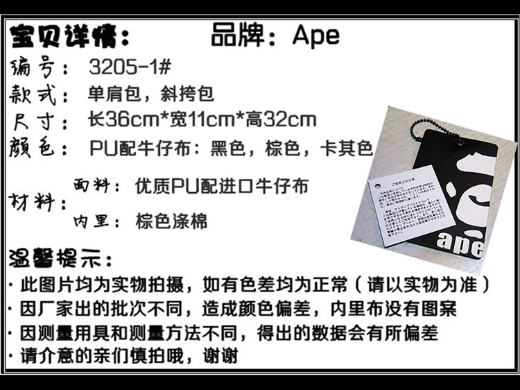 包包批發Ape韓版潮牌男女包時尚休閒包學生包帆佈單肩斜挎兩用包