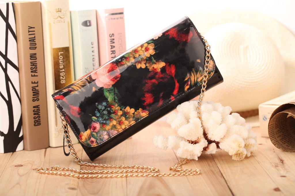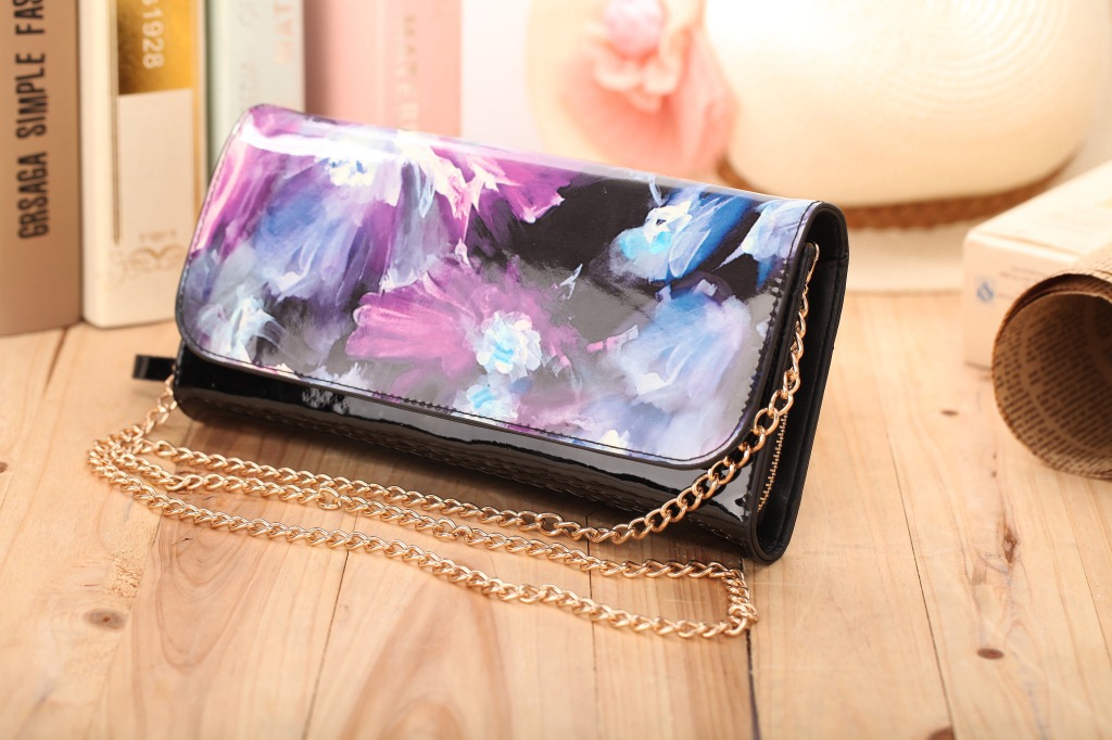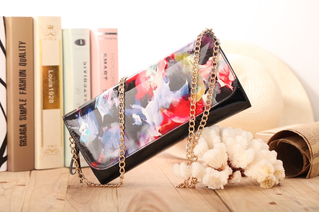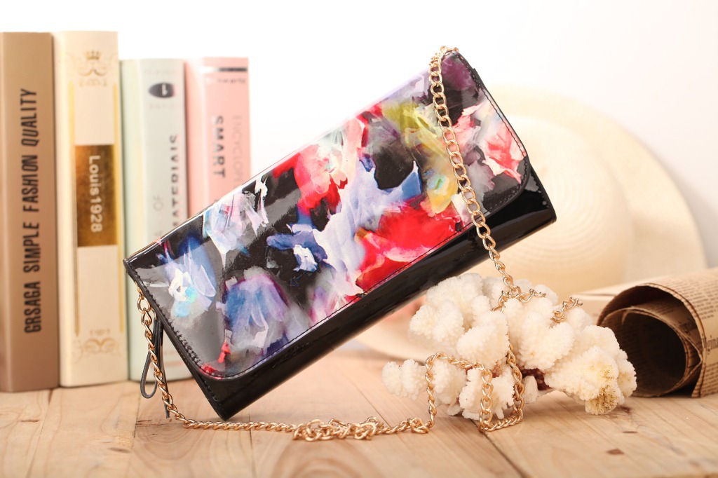 真皮新款單肩斜挎 2014新款潮塗鴉油畫花朵漆皮女包 真皮兩用包
