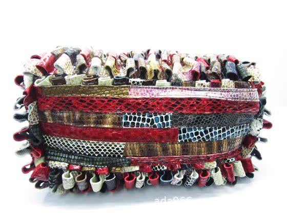 溫馨提示:此款包包采用不規則拼接法,每個真皮包是由不同顏色真皮條隨機拼接而成,每個包包的拼色都是獨有的,都會有不同的色彩,選擇時要註意,如果對此拼接方法介意的話請慎重購買,免得引起不必要的誤會,謝謝!!