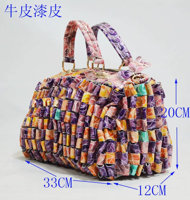 溫馨提示:此款包包采用不規則拼接法,每個真皮包是由不同顏色真皮條隨機拼接而成,每個包包的拼色都是獨有的,都會有不同的色彩,選擇時要註意,如果對此拼接方法介意的話請慎重購買,免得引起不必要的誤會,謝謝!!