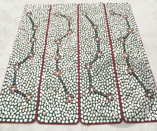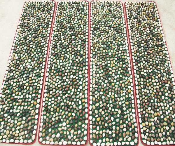 使用瞭純天然南京特產石。別名叫鵝卵石/雨花石/幸運石/火山石。然後經過高強度拋光。使之表面更加的光亮。按摩墊子是全手工制作.用進口環保膠粘制強度非常的高。小到墊圍裹邊都是專業縫紉機工一針一線用縫紉機縫制。質量放心送禮更體面