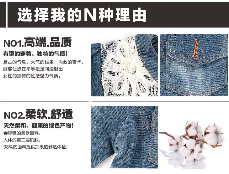 [款 式]:蕾絲邊開衫牛仔夾克