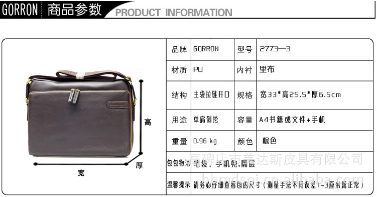 美達斯皮具有限公司主要生產男式背包、公文包、手包,拉桿箱,設計以“簡潔、高貴、時尚、實用”為原則,新品款式開發與時俱進,引領時尚潮流,設計風格與國際品牌接軌,價格與百姓接近。運作貫徹國際質量體系體系ISO9000,做工精致,包型流暢。公司秉承“以質量求生存,以信譽求發展”經營理念,堅持不懈的為消費者服務,讓商傢放心,;是一傢綜合產品研發、設計、生產、銷售於一體的企業,以區域代理形式主攻國內市場。