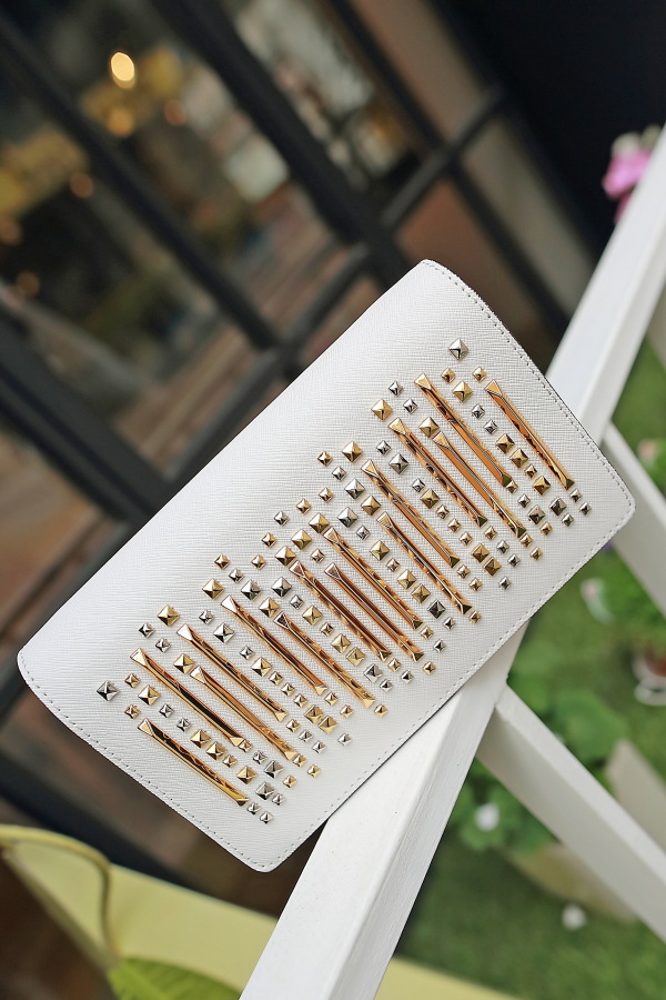 這個手拿包很洋氣,五金是銀色和金色拼的包包尺寸 長:20CM 寬:5.3CM 高:12CM ,肩帶:全長144CM,可調節,最短138CM可以放一隻手機,自拍神器,口紅,鑰匙。內層拉鏈袋可以放零錢,卡等等,但是不能放錢包。帶子可以拆卸可調節