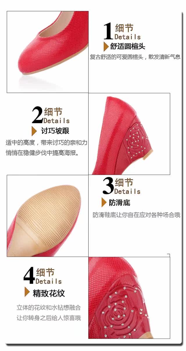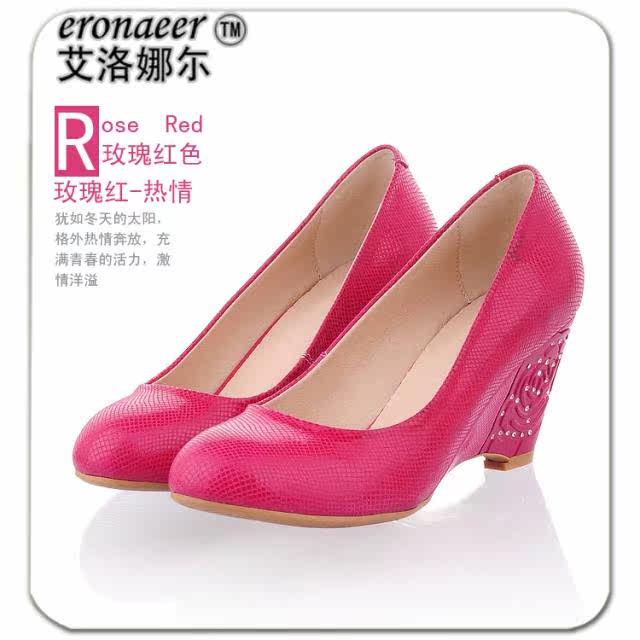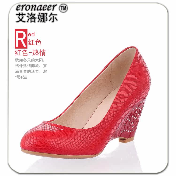 供應【eronaeer】2012春新款單鞋牛皮坡跟女鞋水鉆真皮高跟鞋