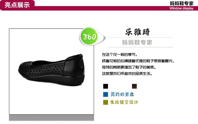 制作工藝: 注壓鞋 這款鏤空的媽媽鞋,尺碼是標準的,但屬于寬松休閑型鞋子,腳肥大的話可以不用選大一碼的,如果腳小巧型的話可以選小一碼的。