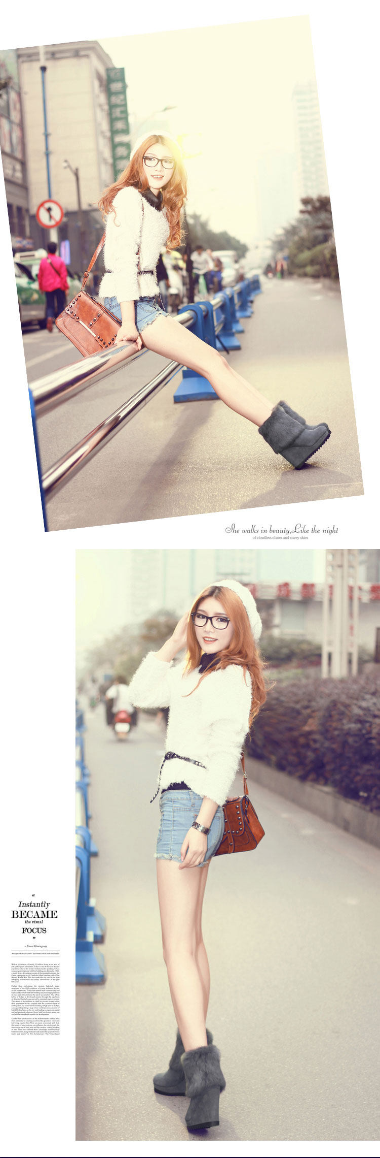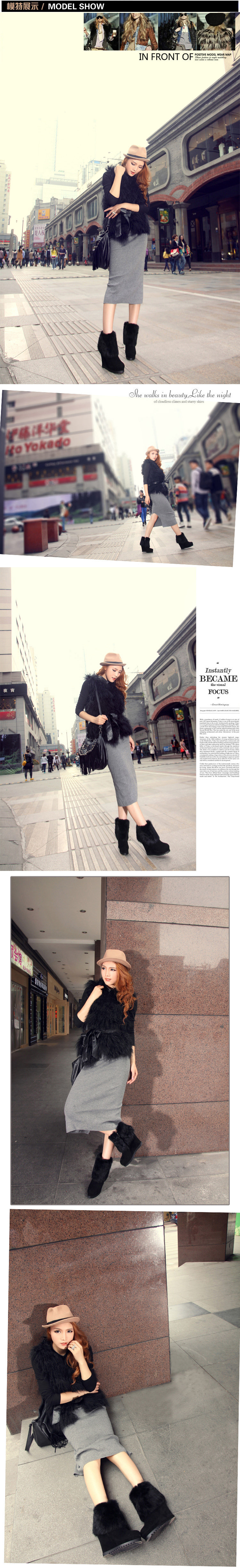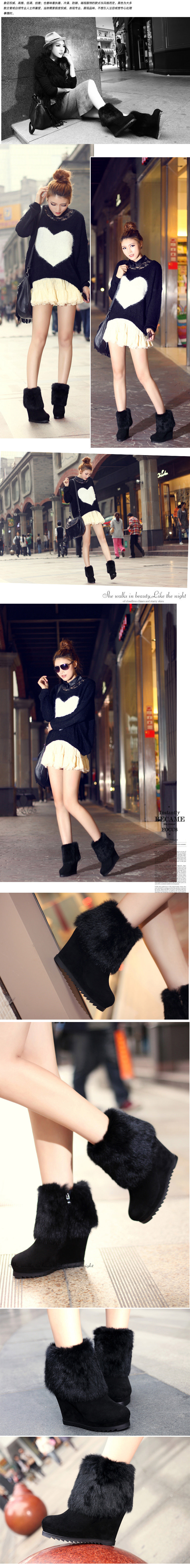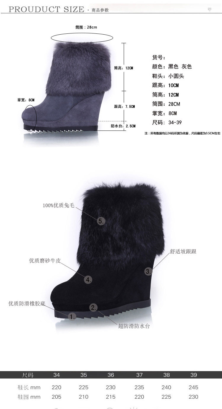供應音妮詩冬季女鞋厚底棉靴高跟靴子狐貍真皮女靴兔毛短靴坡跟雪地