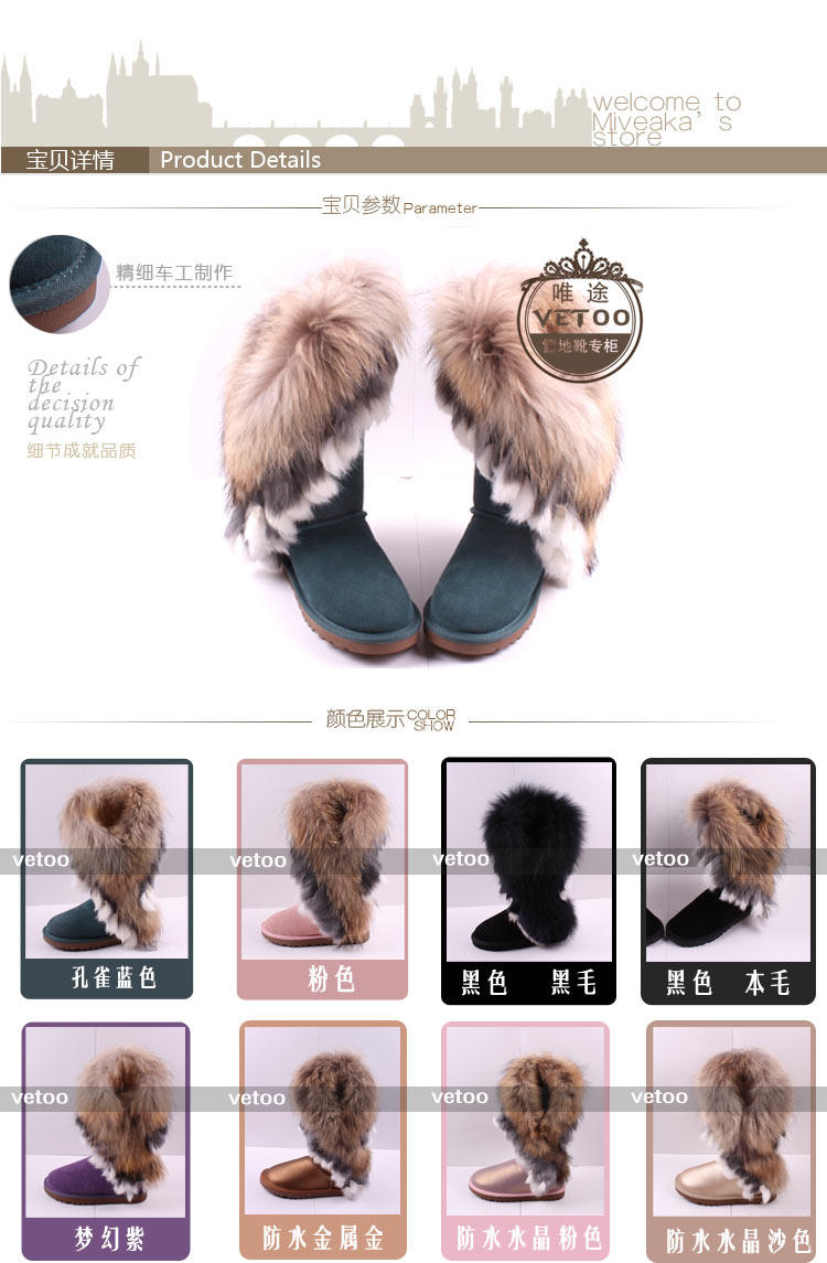 供應2012新款正品雪地靴狐貍毛款牛皮女鞋兔毛牛筋底高筒流蘇