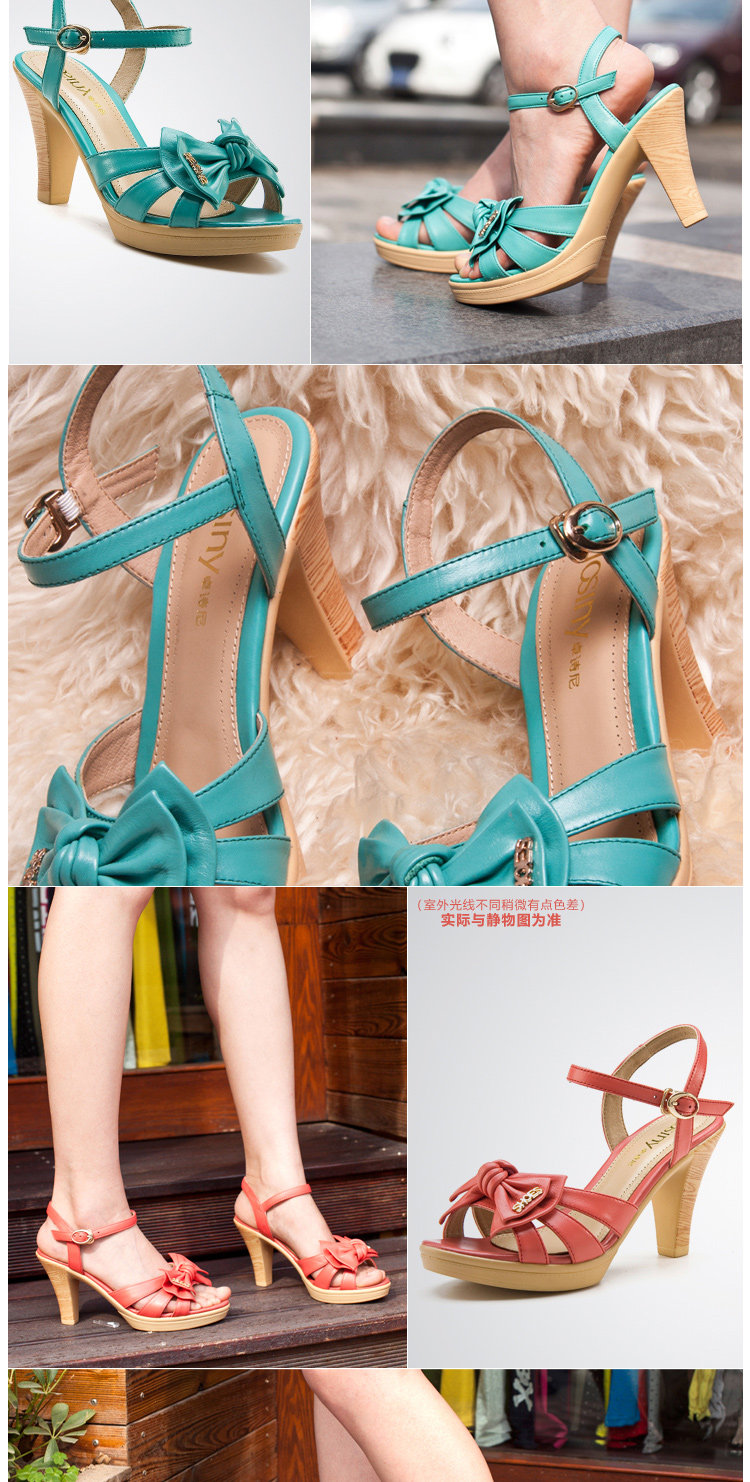 供應卓詩尼 2012新款羅馬粗跟防水臺女鞋 真皮高跟涼鞋