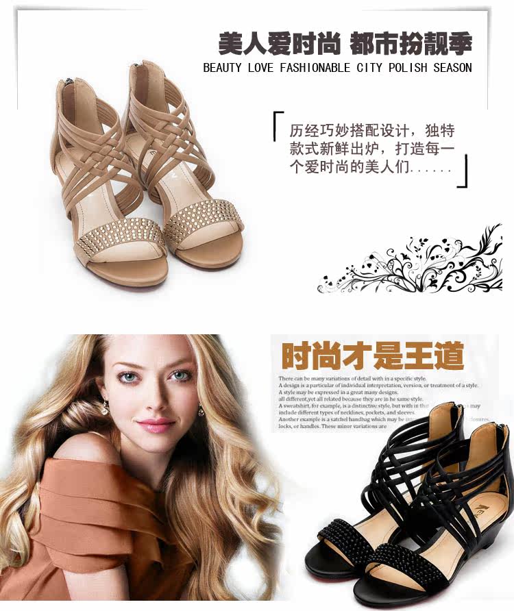 意爾康 2012新款真皮坡跟女涼時尚魅力鉆石女涼鞋2LC233243