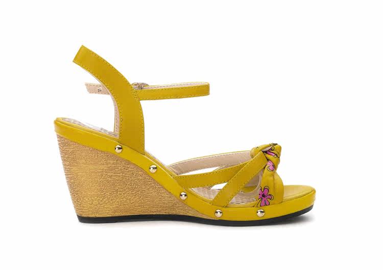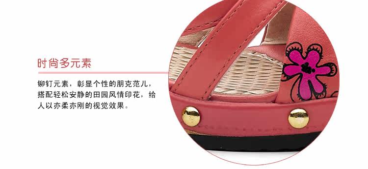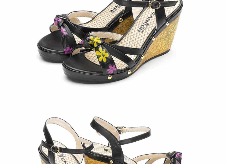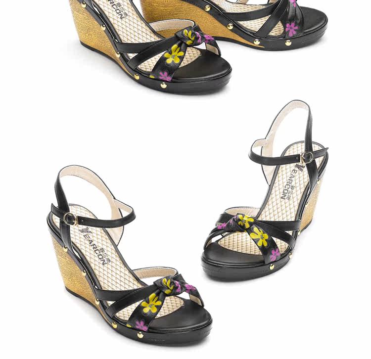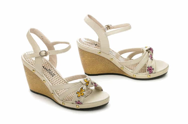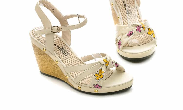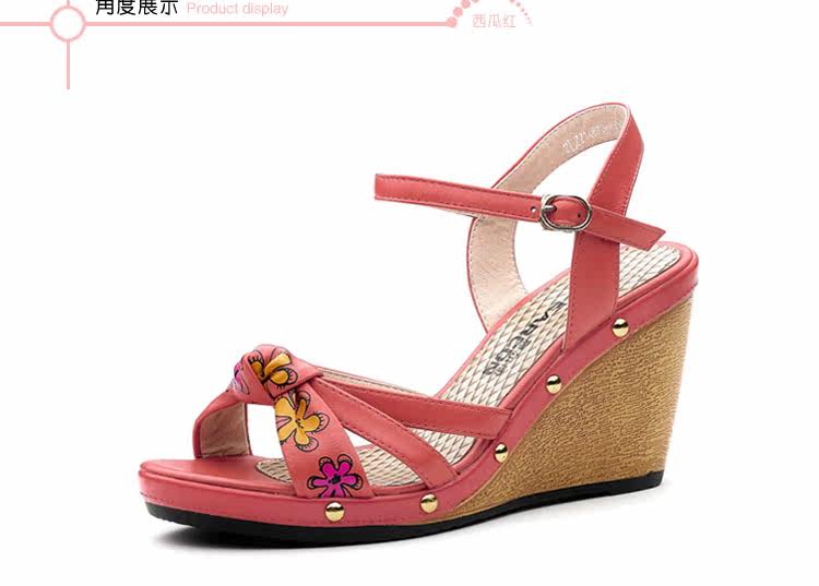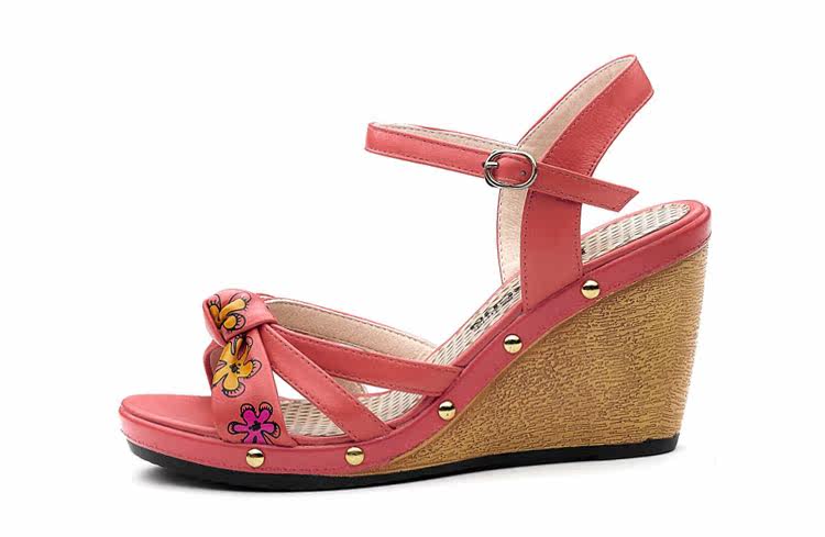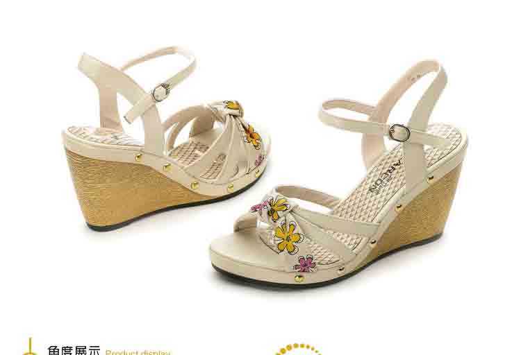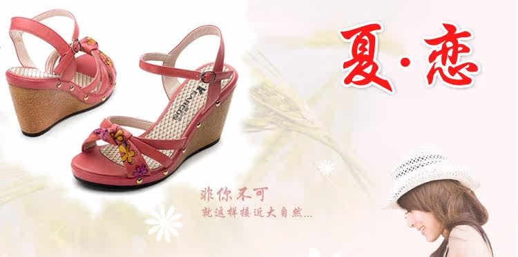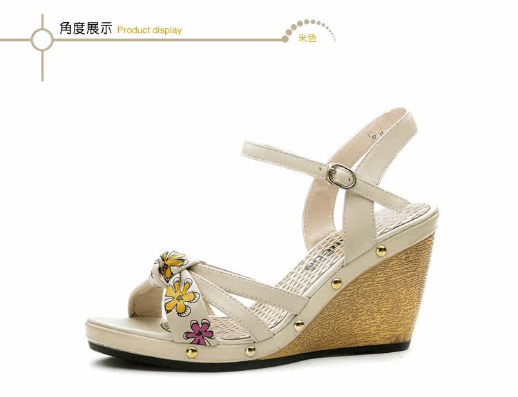 意爾康 2012新款真皮坡跟女涼甜美淑女時尚百搭女涼鞋2LZ214873