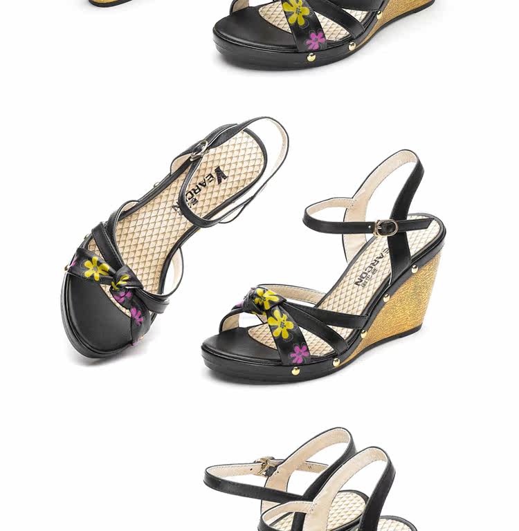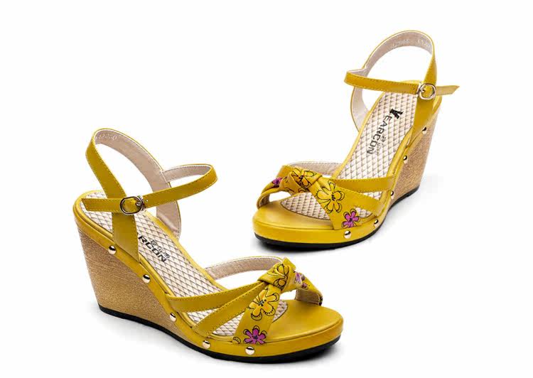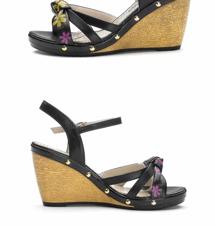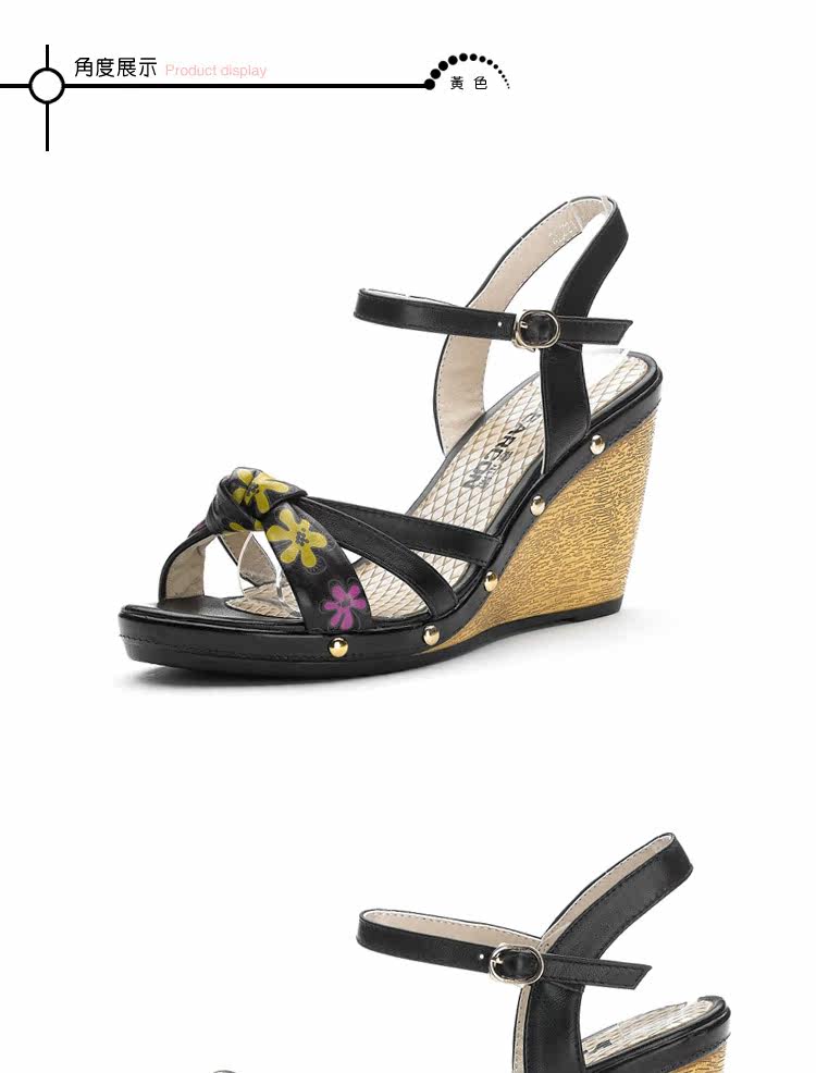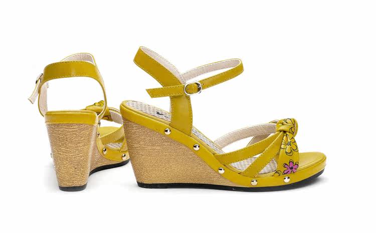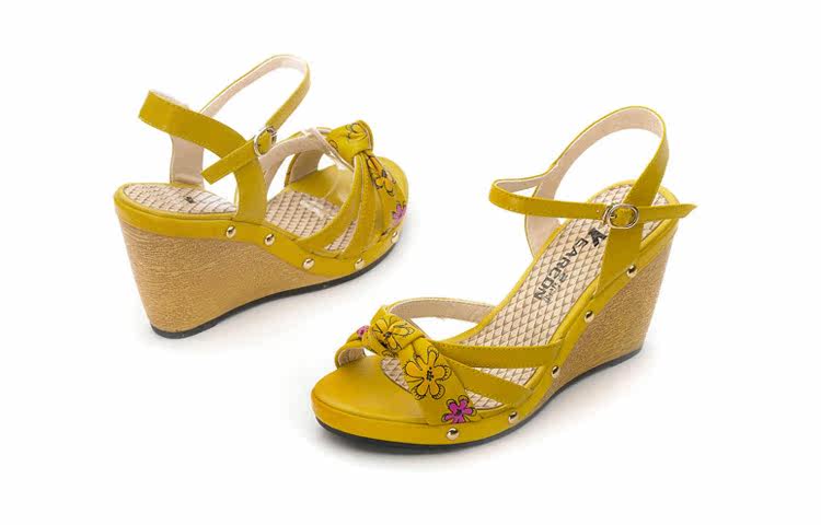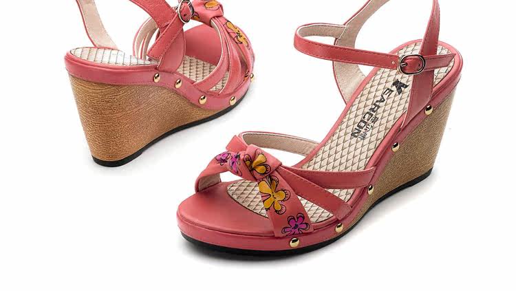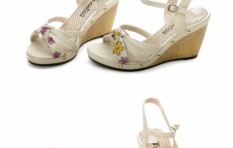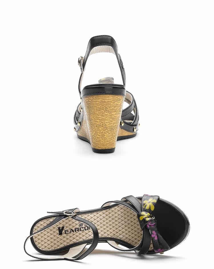 意爾康 2012新款真皮坡跟女涼甜美淑女時尚百搭女涼鞋2LZ214873
