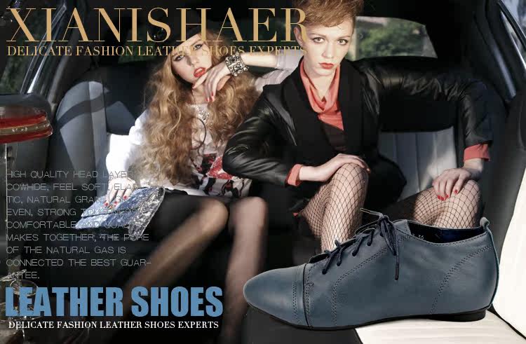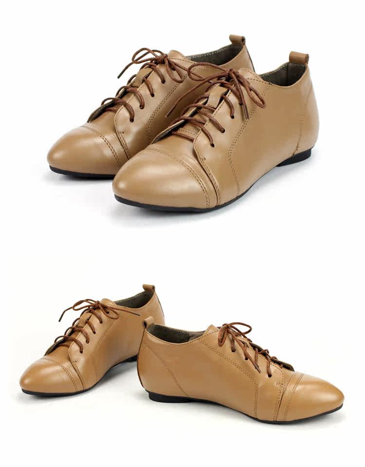 夏妮莎爾 2012新款真皮英倫風女鞋 休閑系帶平底圓頭單鞋 9052