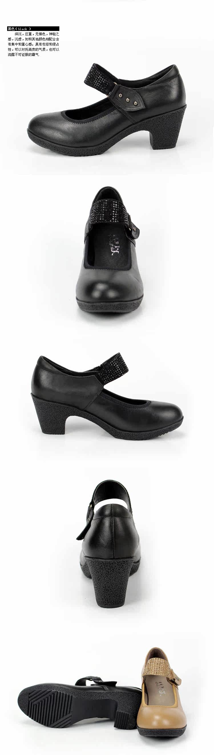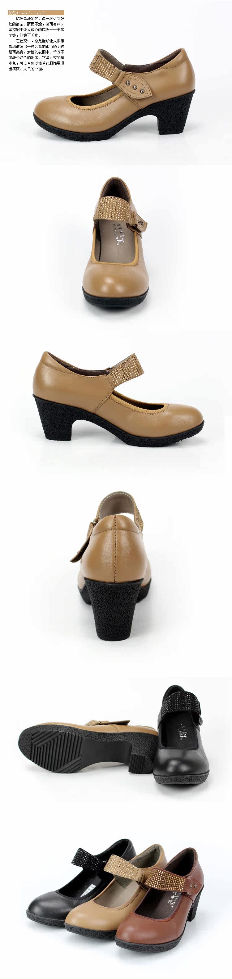 夏妮莎爾 2012新款真皮單鞋 頭層牛皮水鉆皮帶扣休閑粗中跟女鞋
