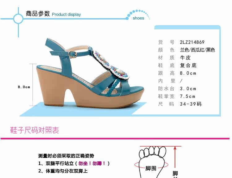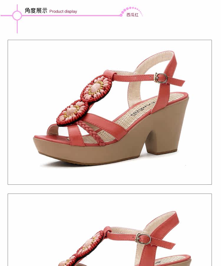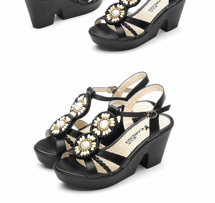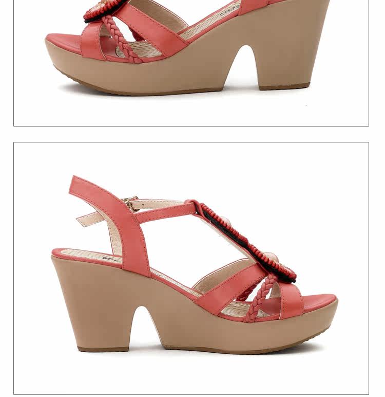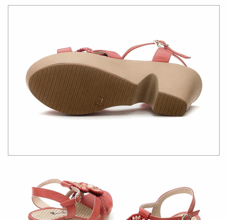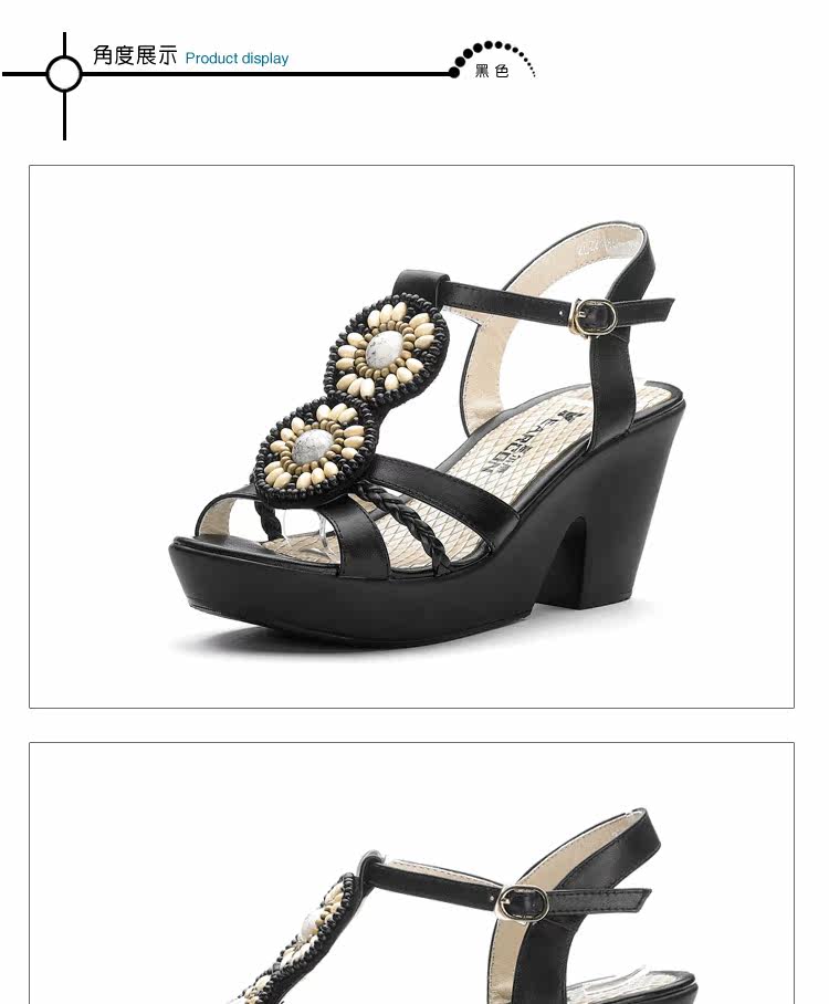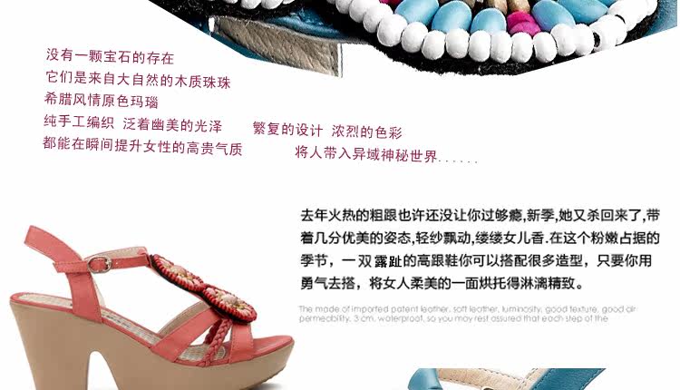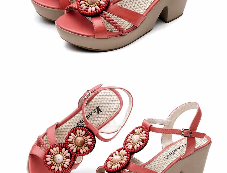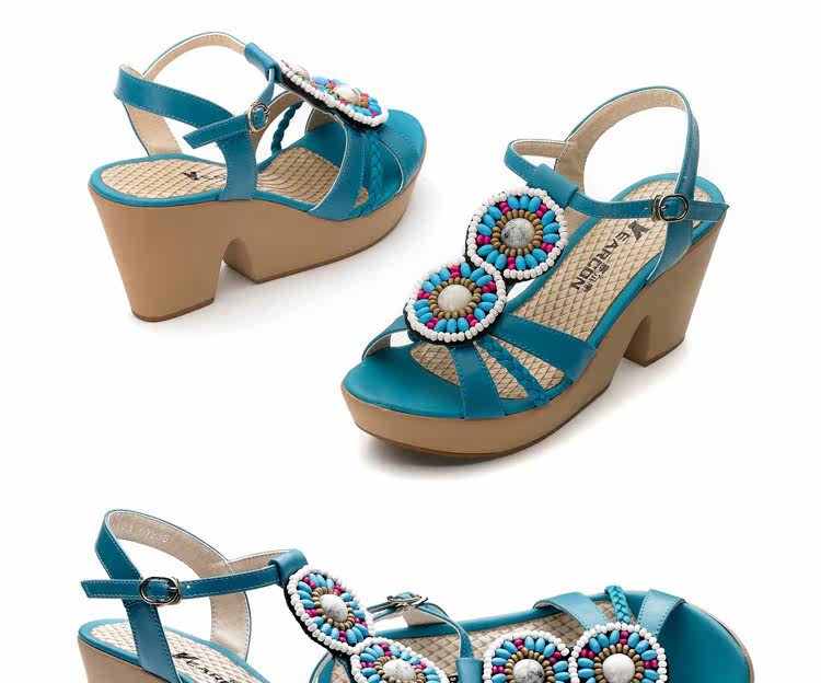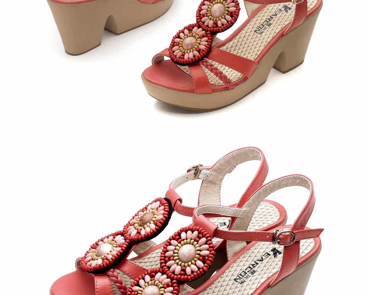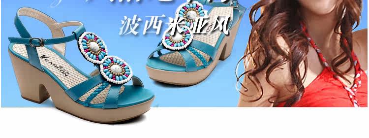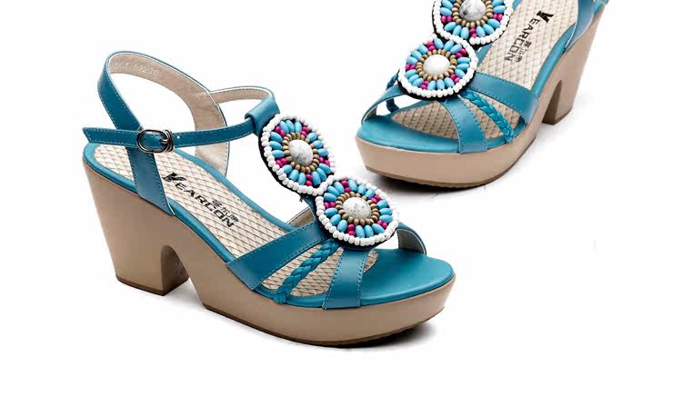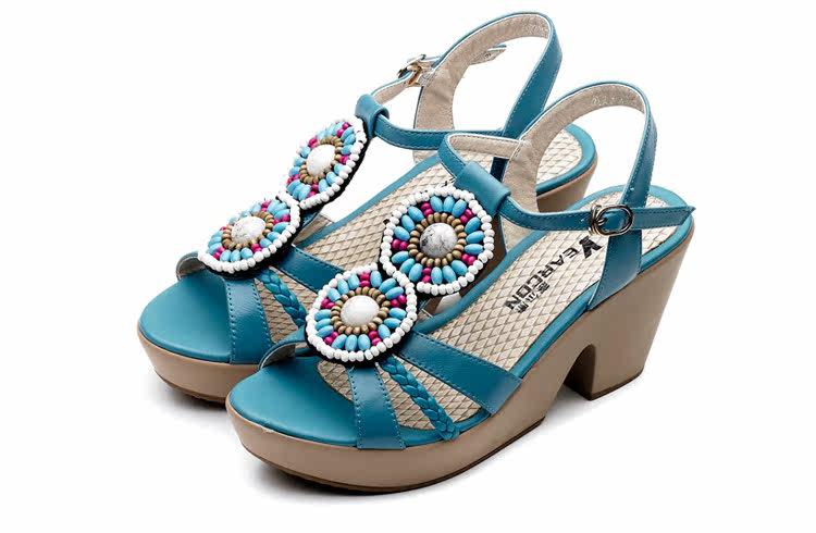 意爾康2012新款真皮女涼潮流異形跟甜美珠花女涼鞋2LZ214869