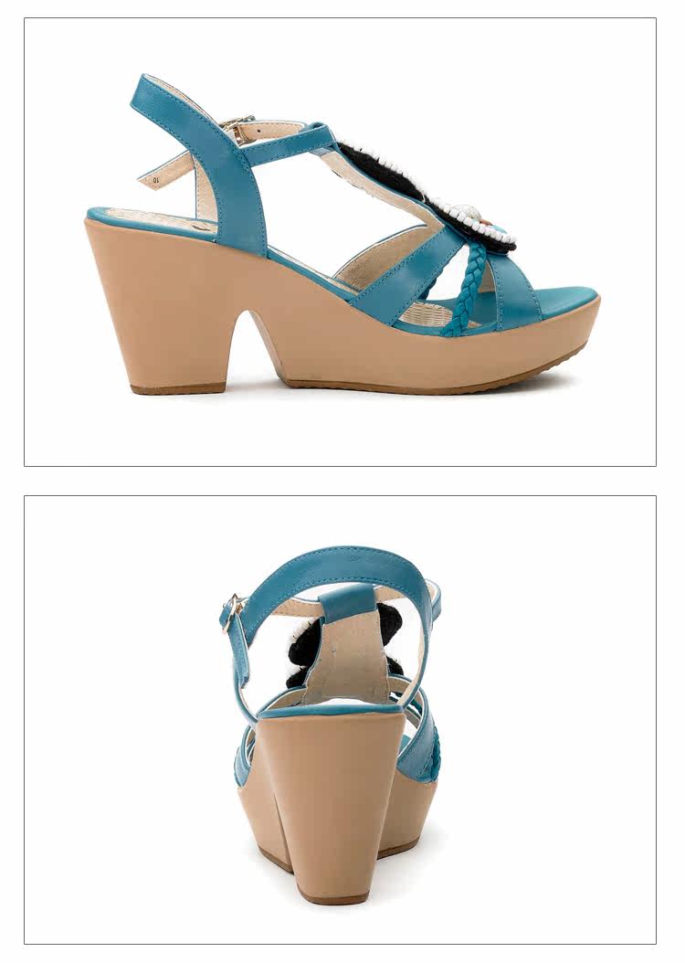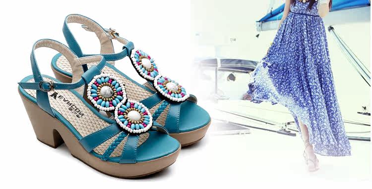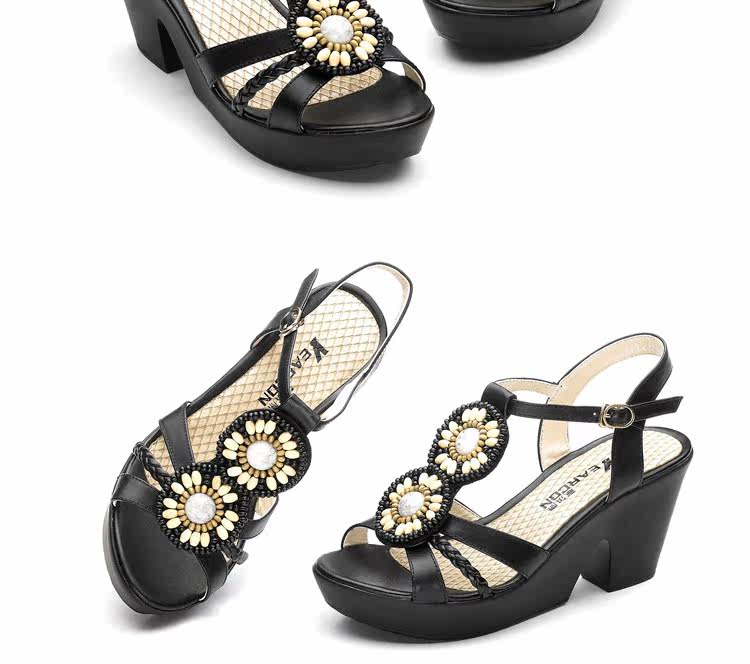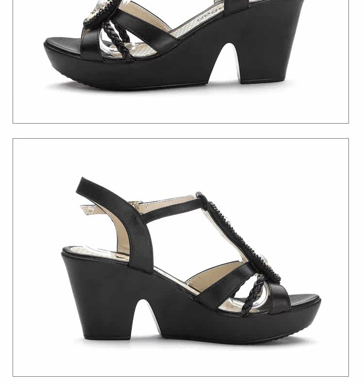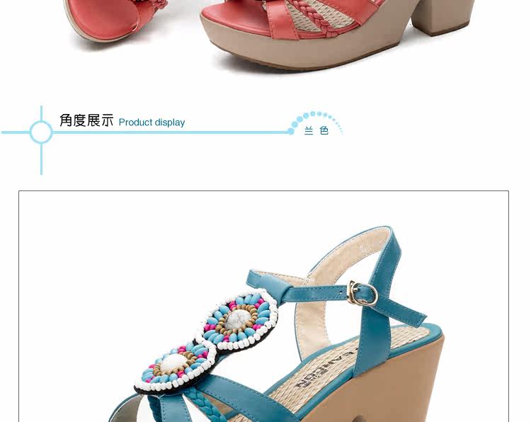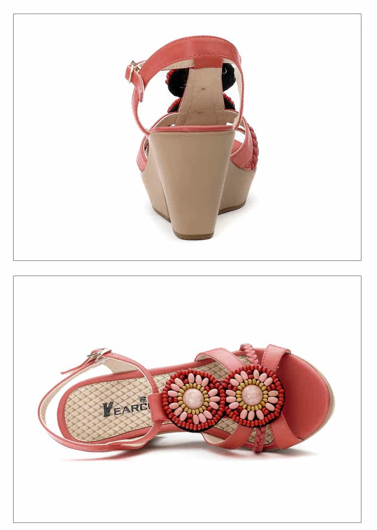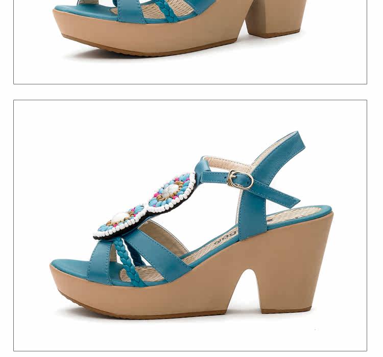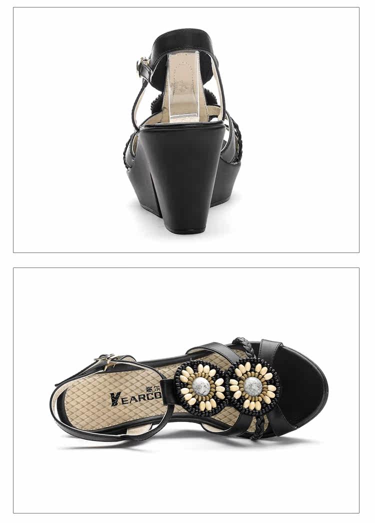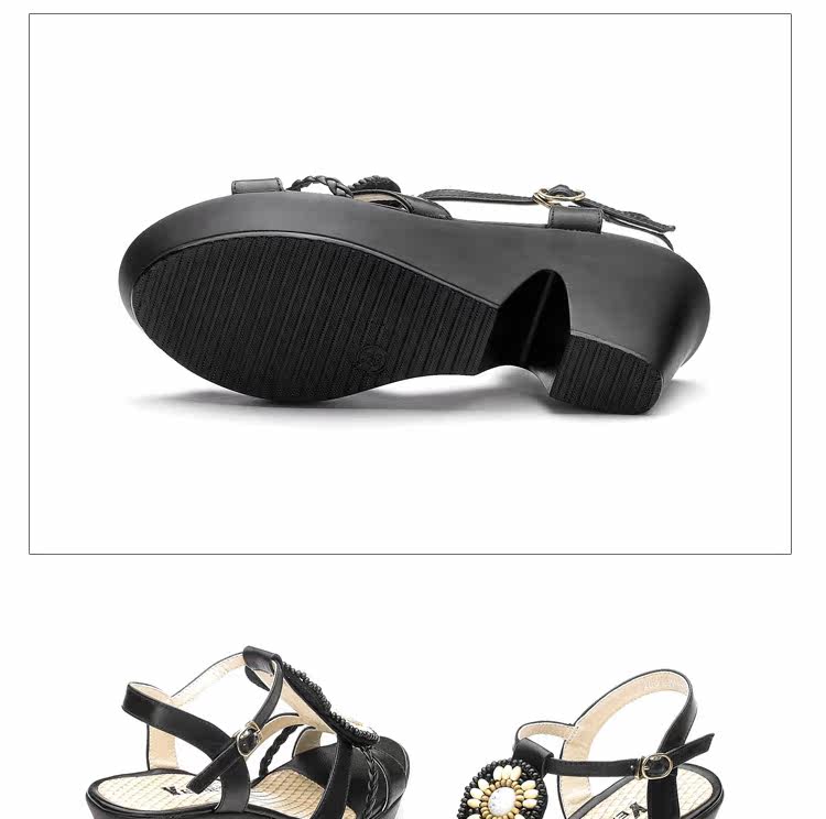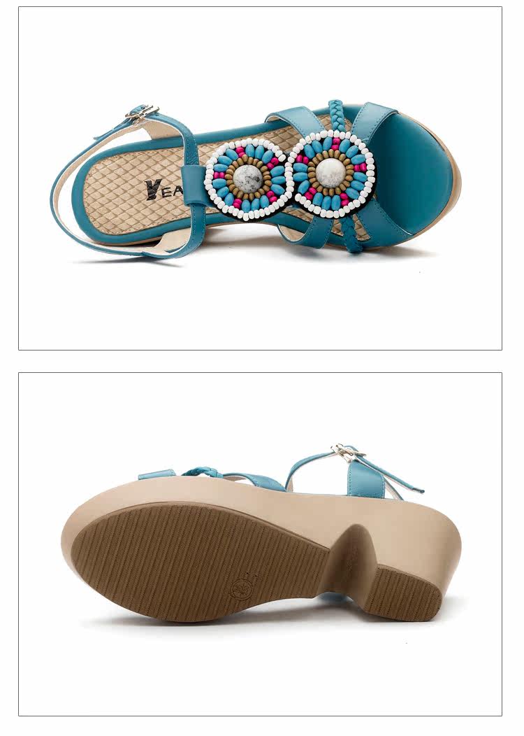 意爾康2012新款真皮女涼潮流異形跟甜美珠花女涼鞋2LZ214869