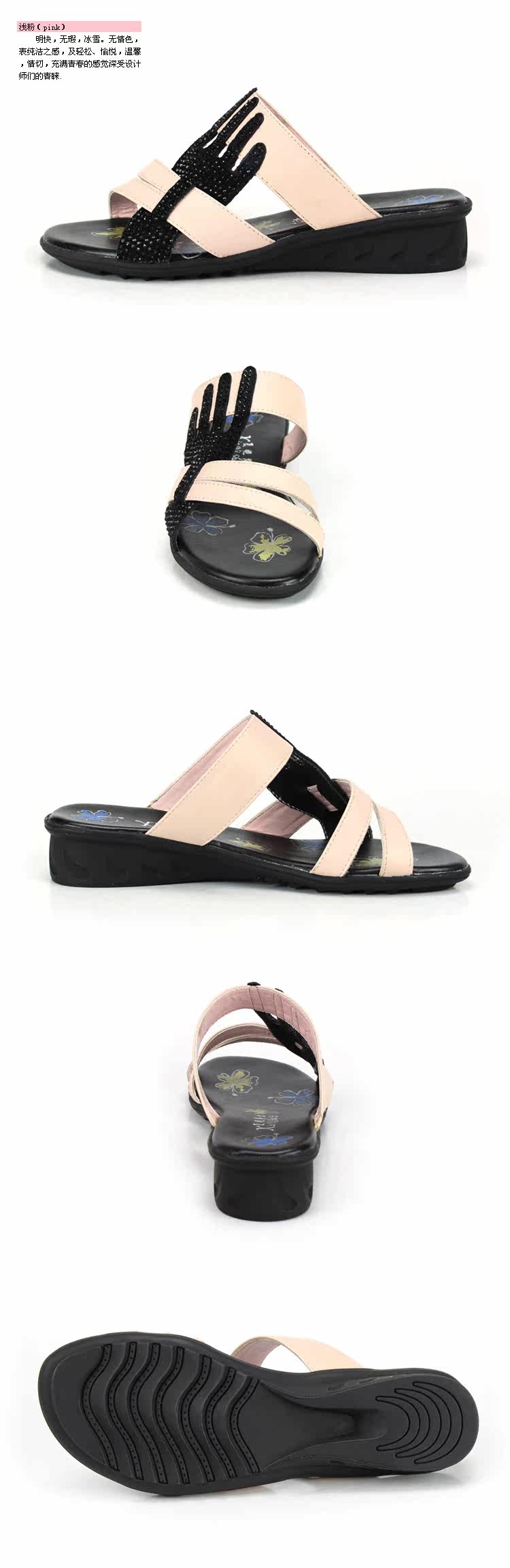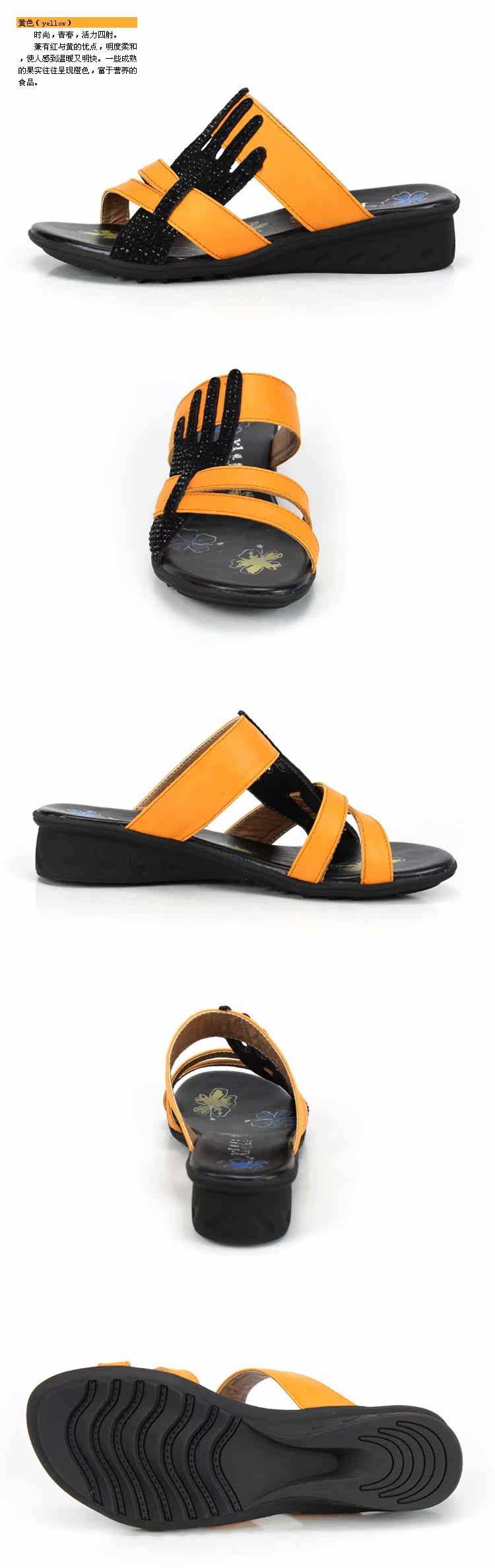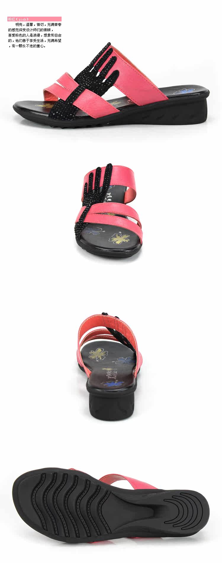 夏妮莎爾 2012新品真皮平跟涼拖鞋 水鉆可愛手掌休閑舒適女鞋8805