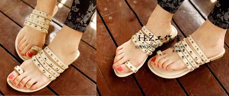 供應(3.5元)2012新款女主腳1韓國套趾細條組合鉚釘平跟羅馬涼鞋涼拖女鞋