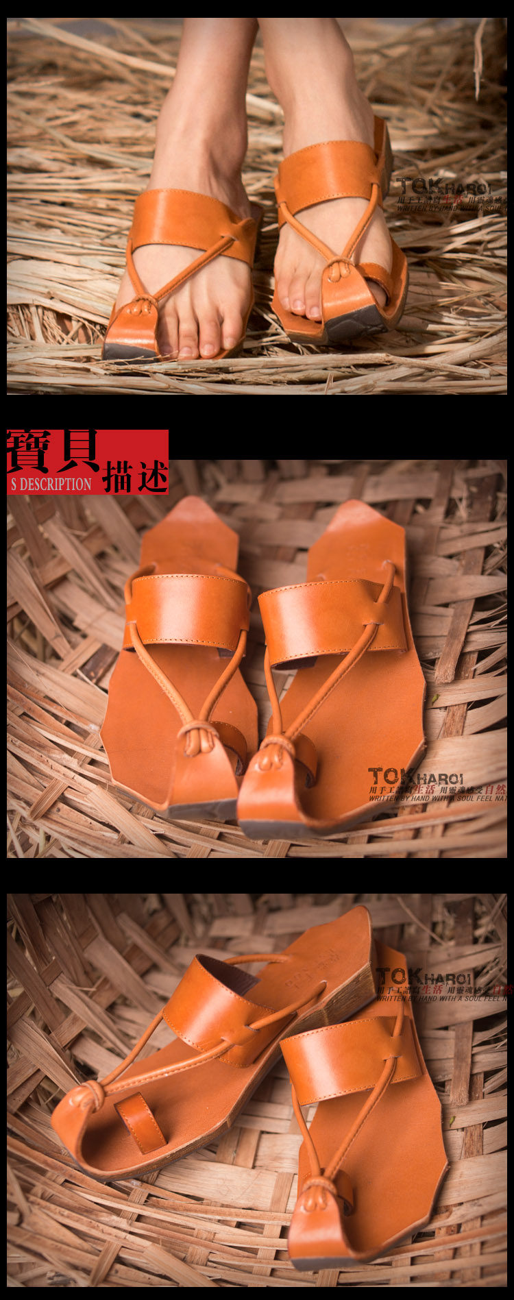 供應(26元)TOKharoi 手工 個性真皮拖鞋 舒適復古女鞋 特色 女涼拖鞋