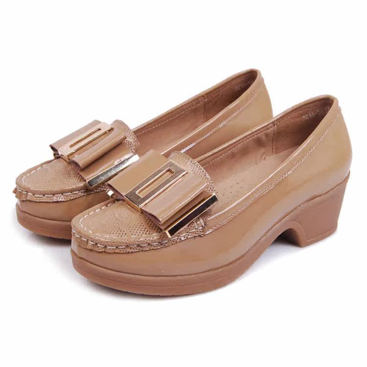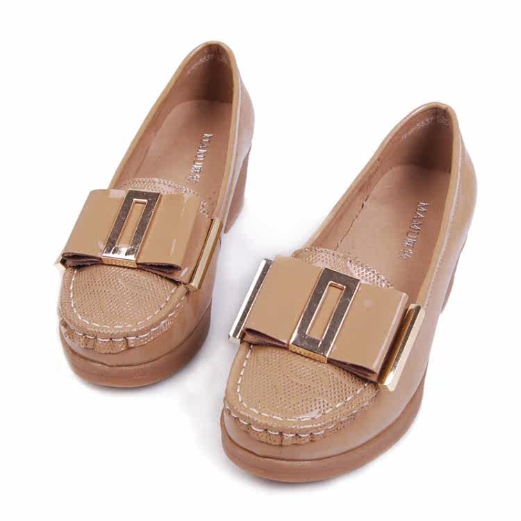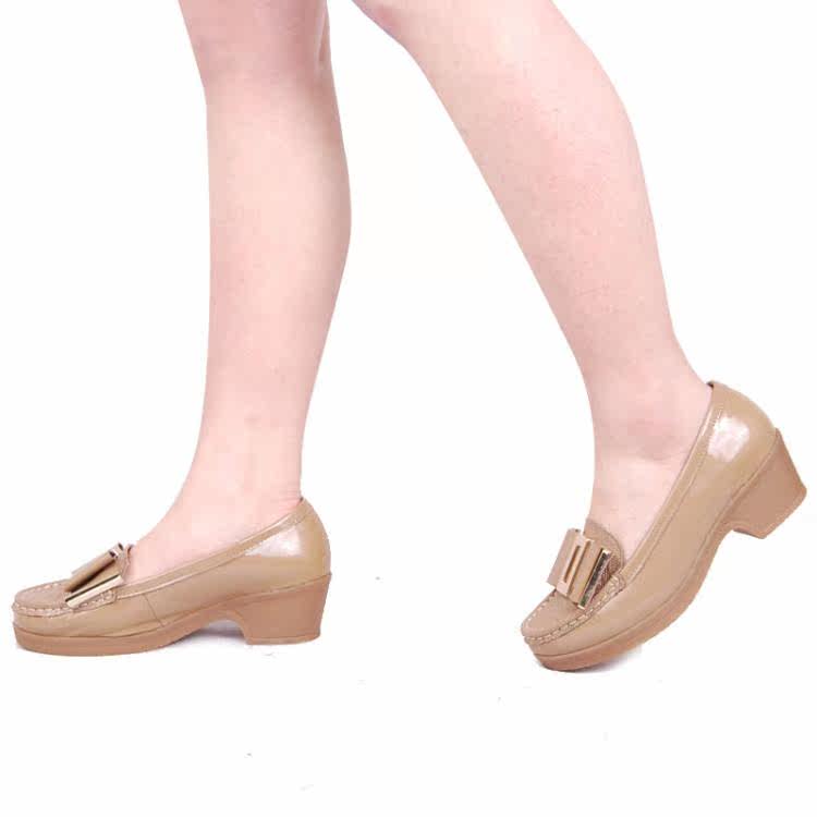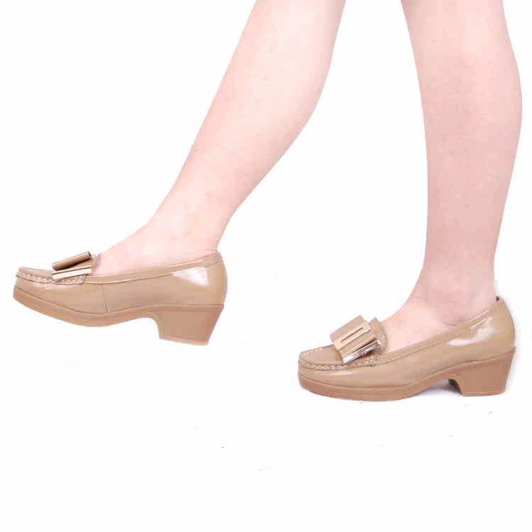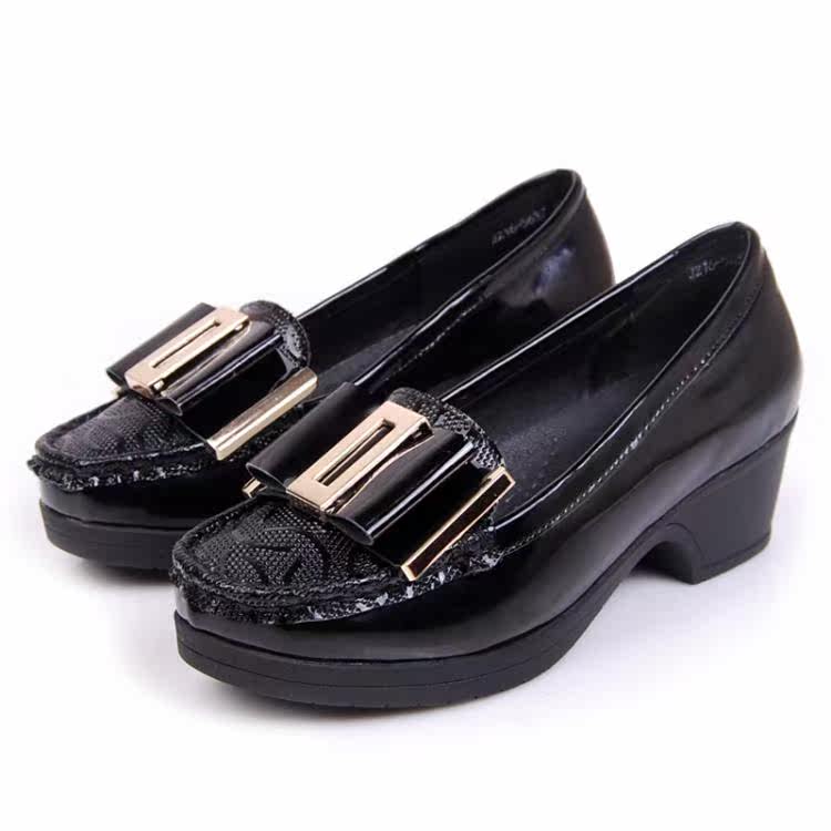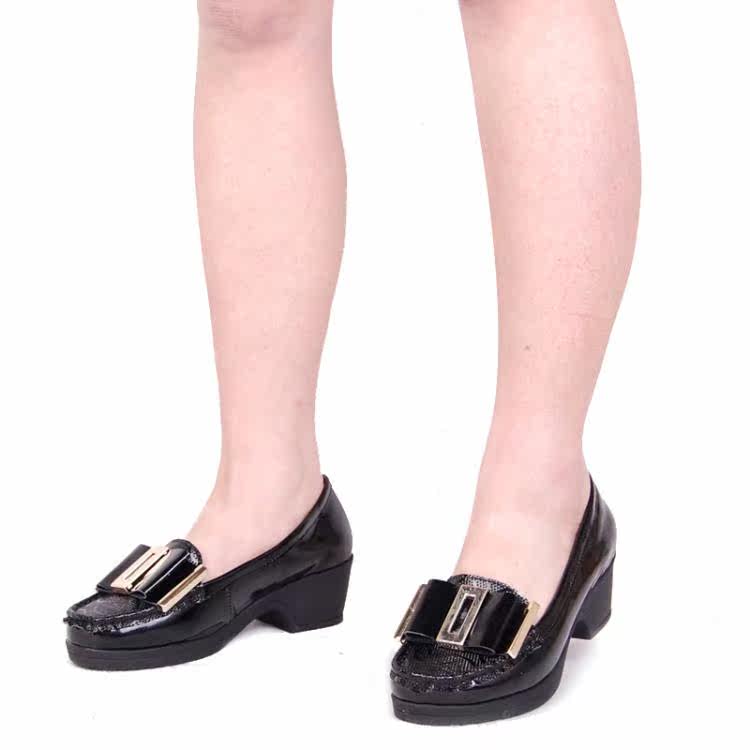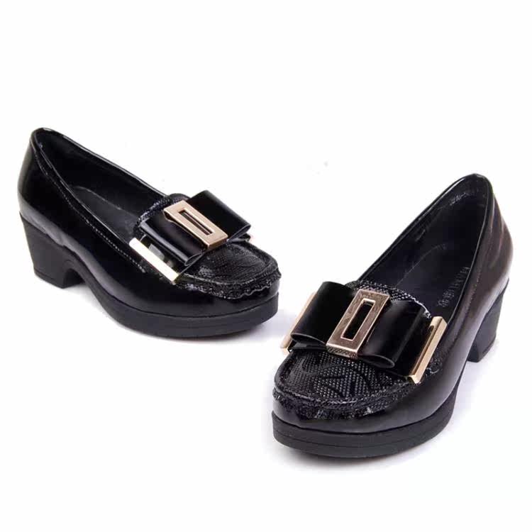 供應2012春季新款 漆皮牛皮淺口牛筋底柔軟真皮單鞋方跟女鞋