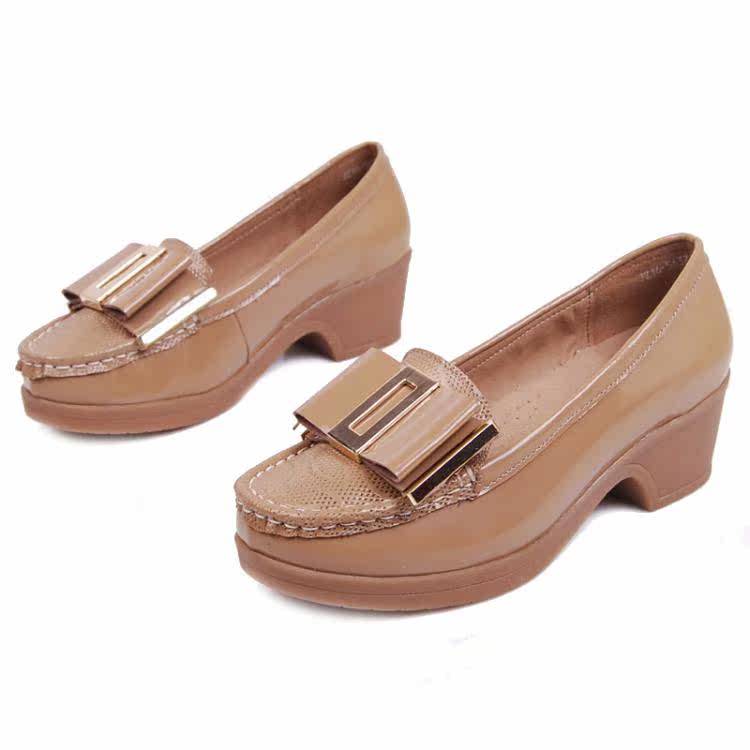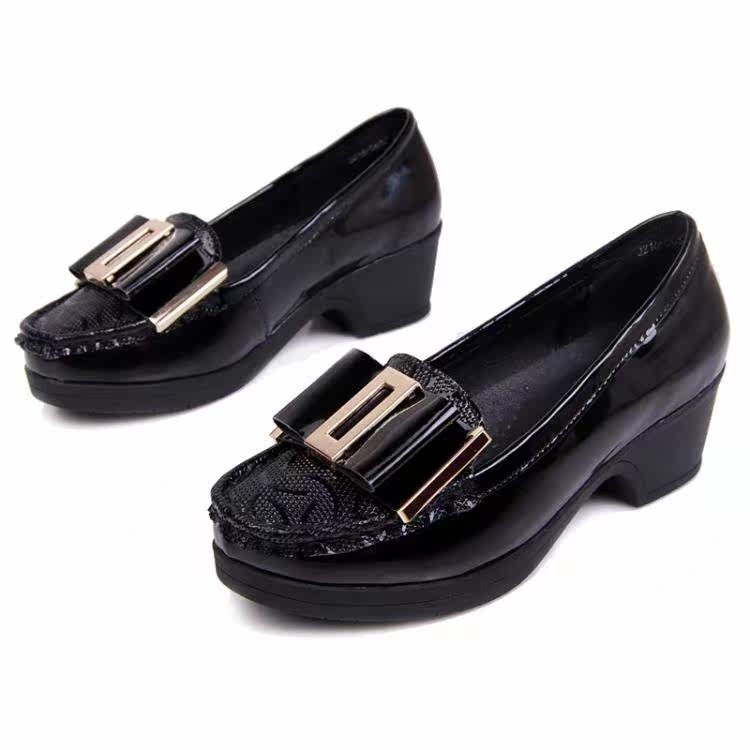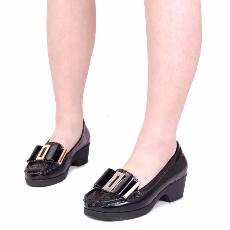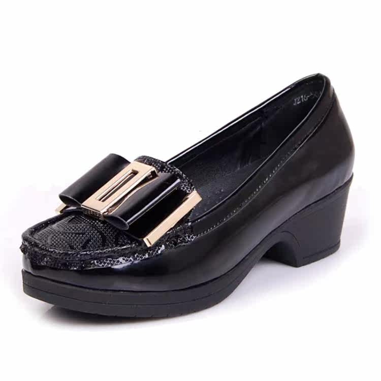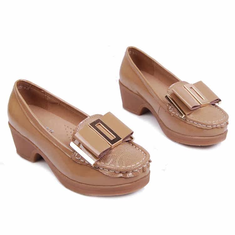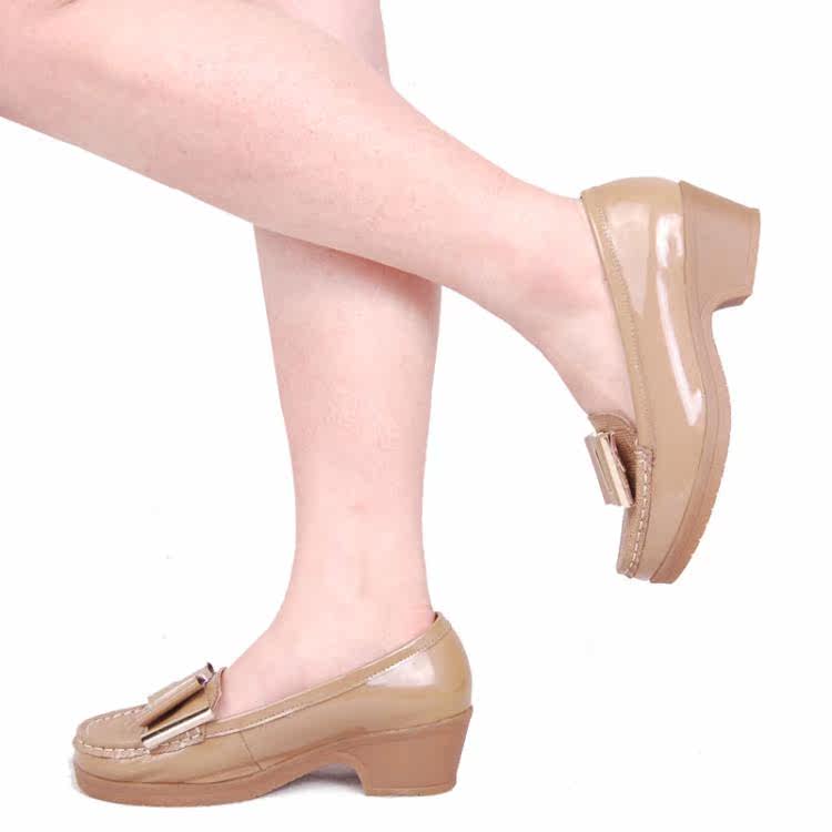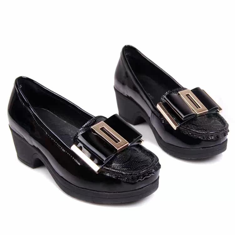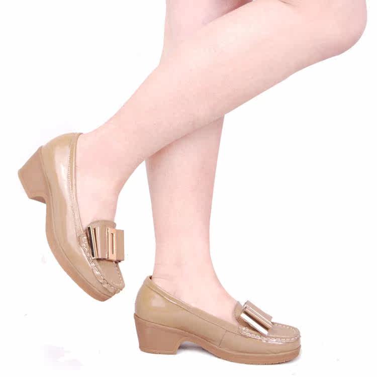 供應2012春季新款 漆皮牛皮淺口牛筋底柔軟真皮單鞋方跟女鞋