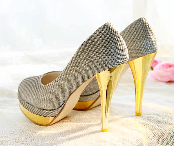 供應單鞋 2011新款流行時裝面料鍍金防水臺超高跟鞋單鞋圓頭高跟鞋單鞋女鞋