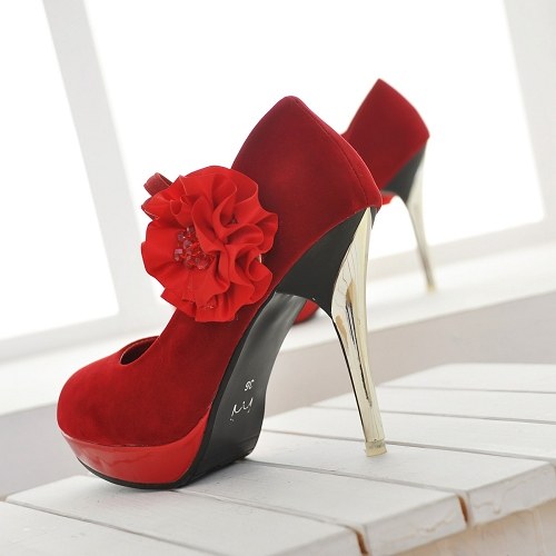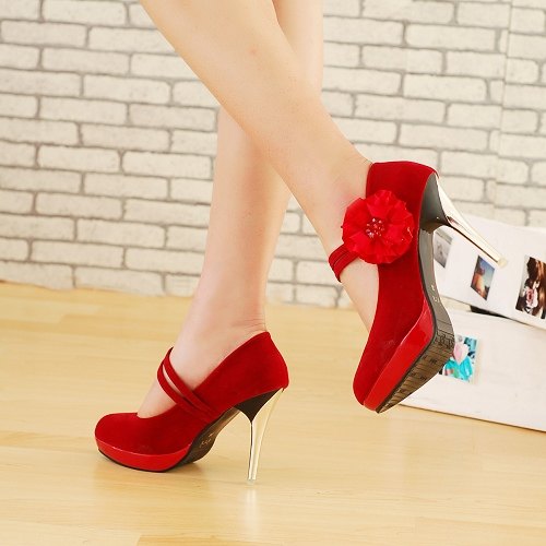 供應單鞋 2011新款花朵細高跟磨砂面防水臺超高跟鞋單鞋紅色新娘鞋婚鞋女鞋