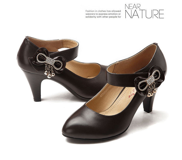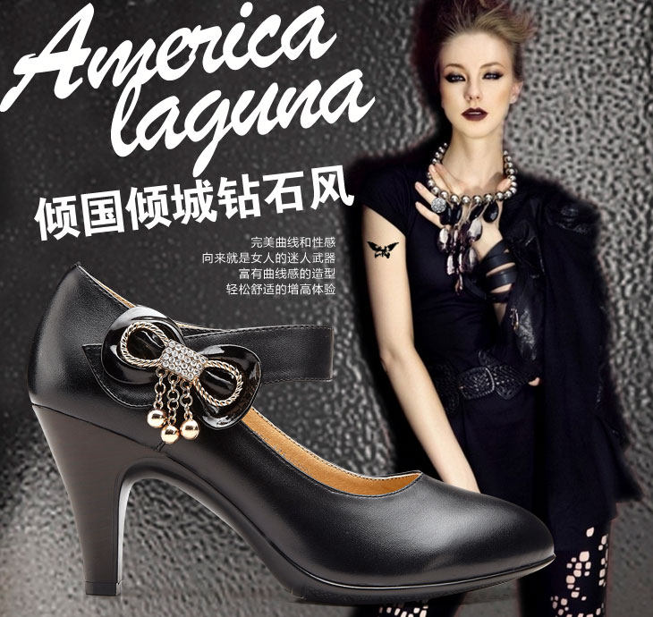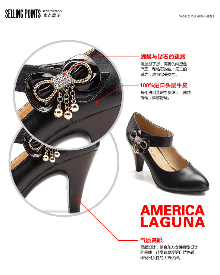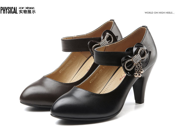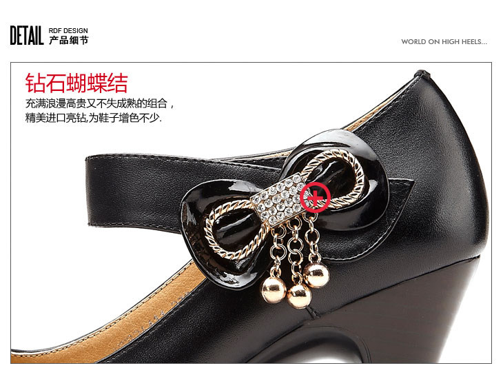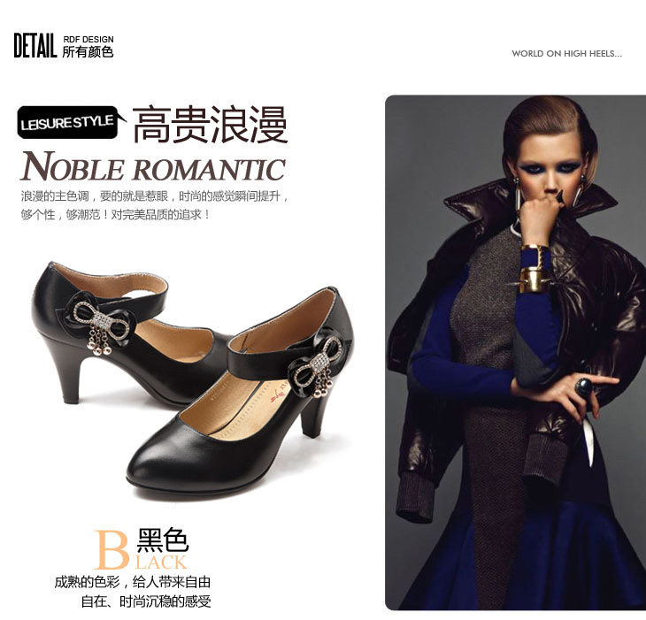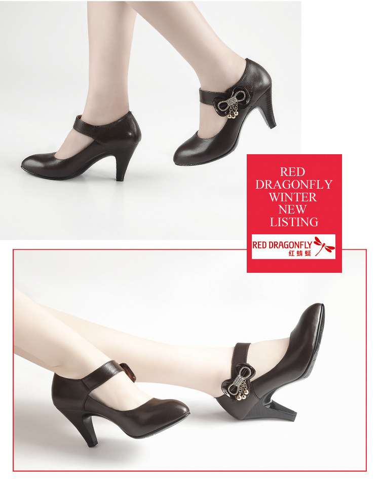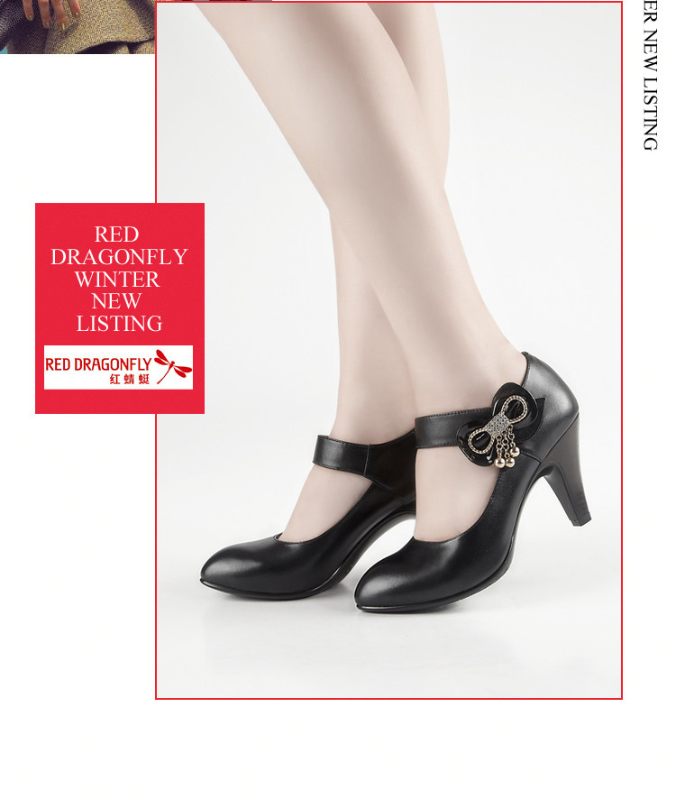 紅蜻蜓 真皮WTB26411女單鞋 2012秋季正品新品蝴蝶結水鉆鏈子女鞋