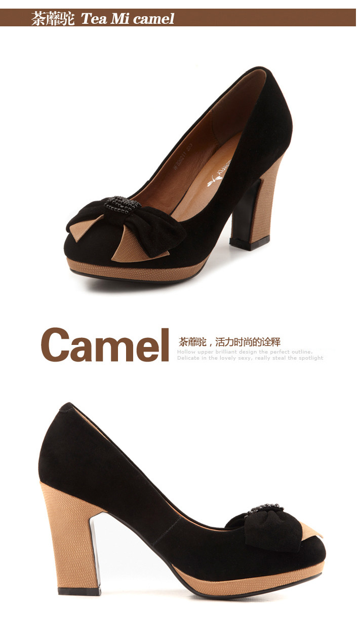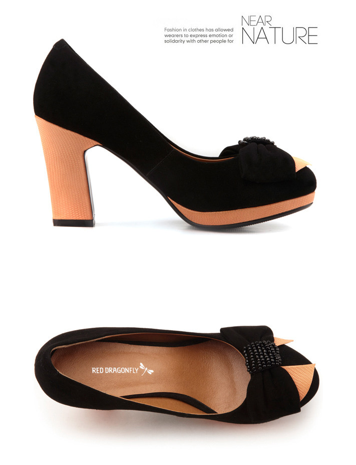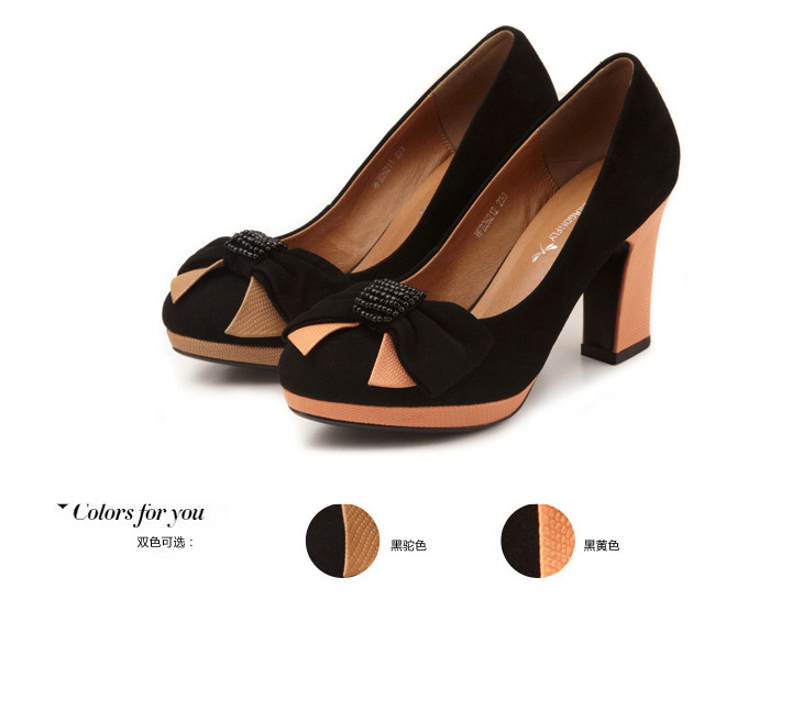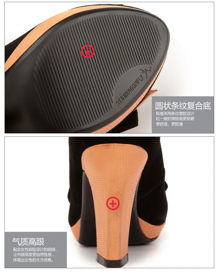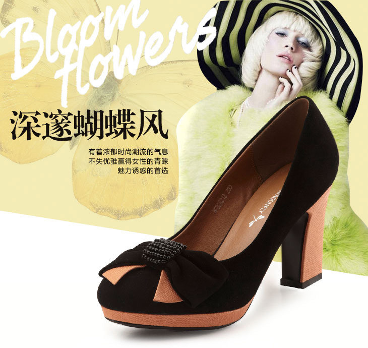 紅蜻蜓 真皮女單鞋 2012秋冬新款正品時尚反絨蝴蝶結防水臺女鞋