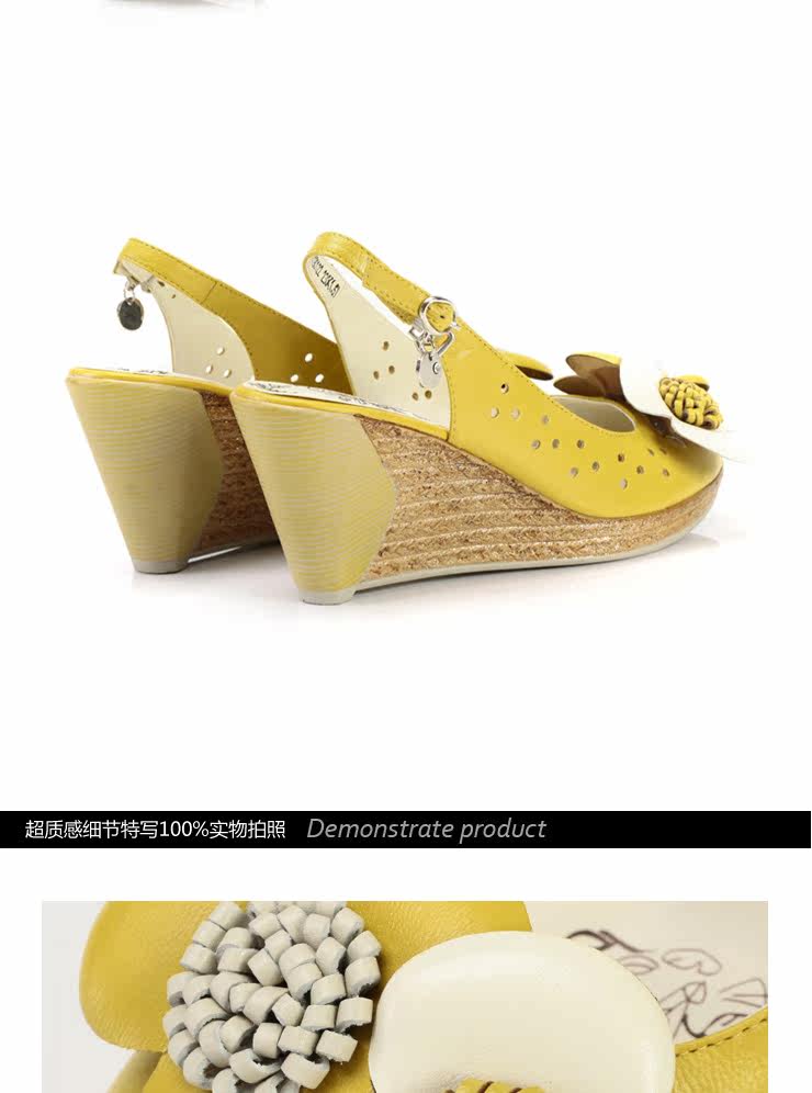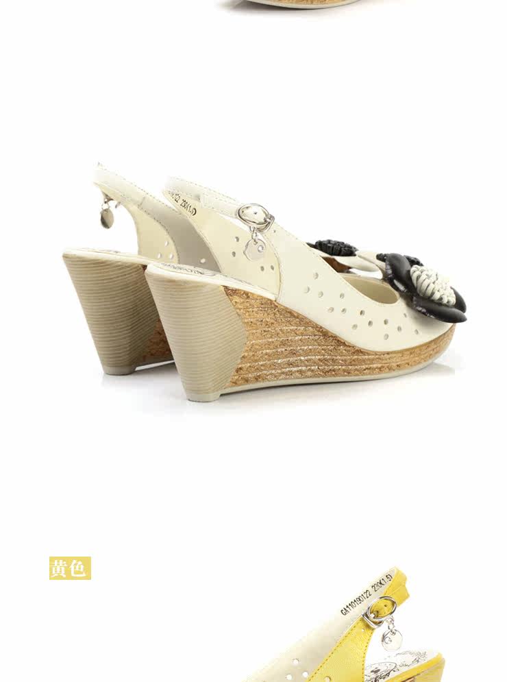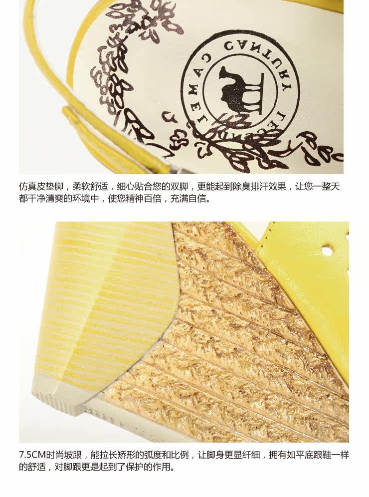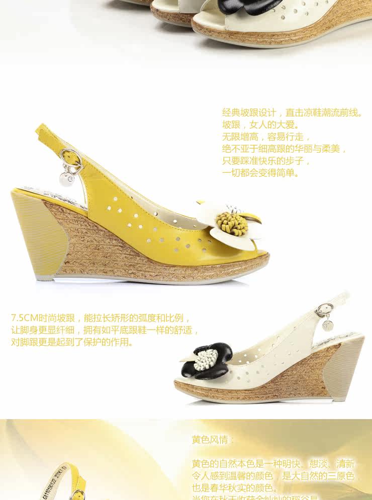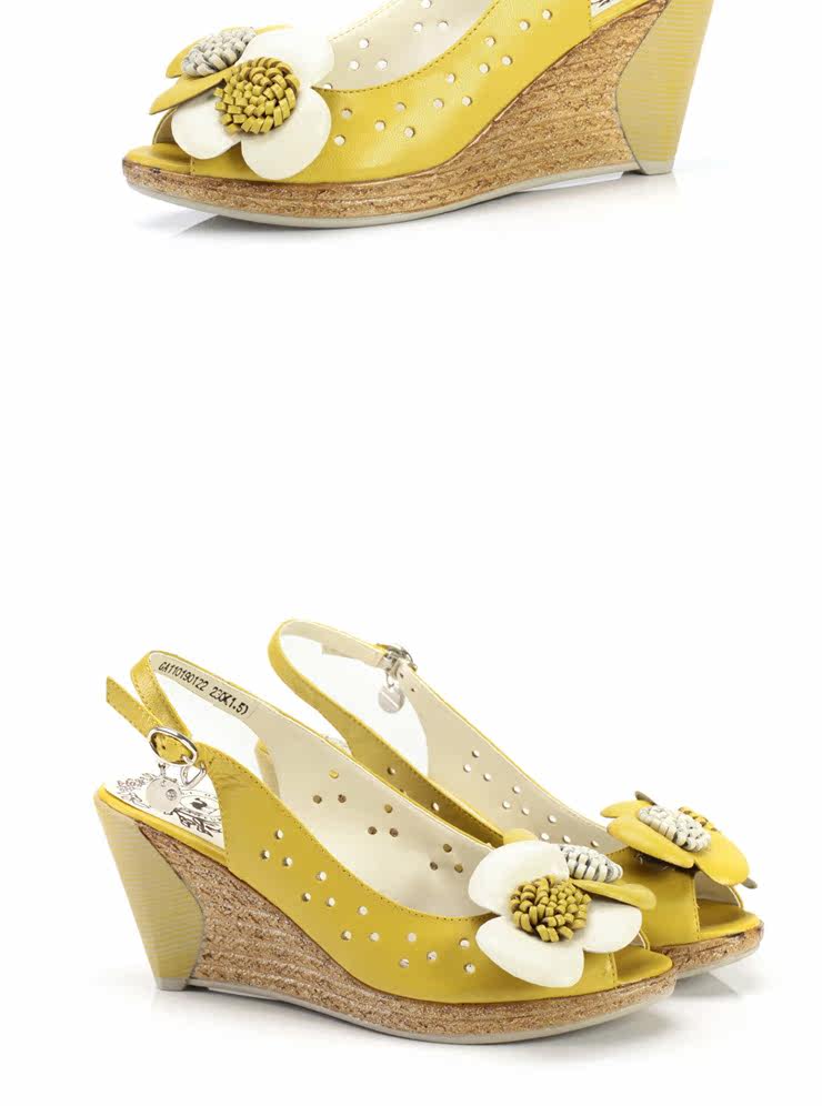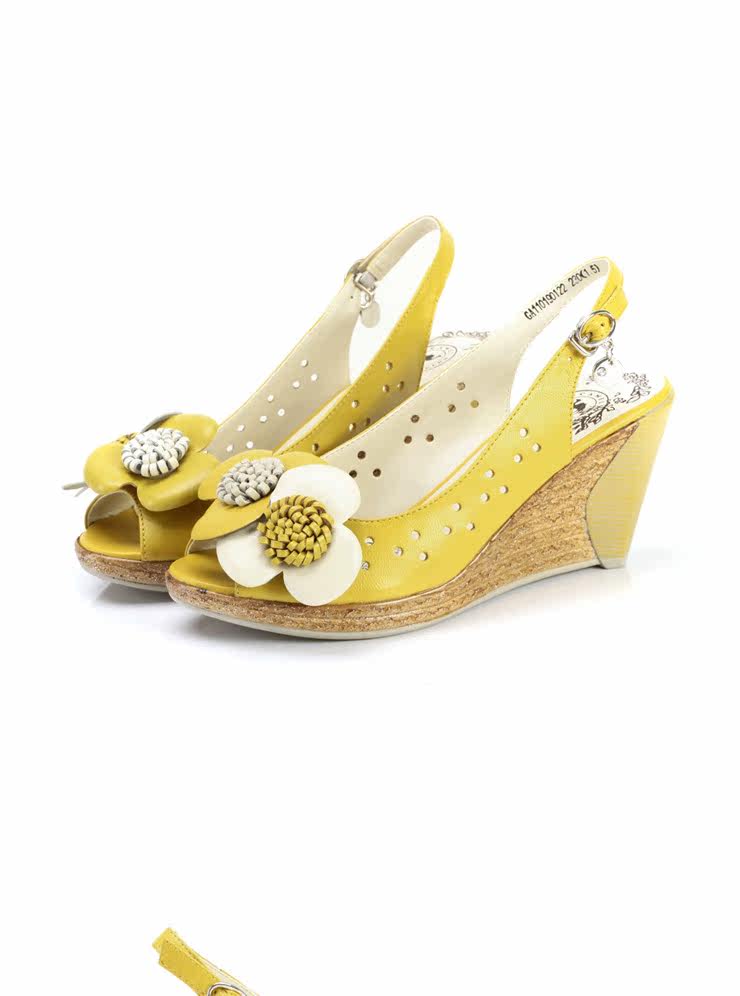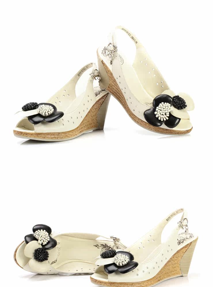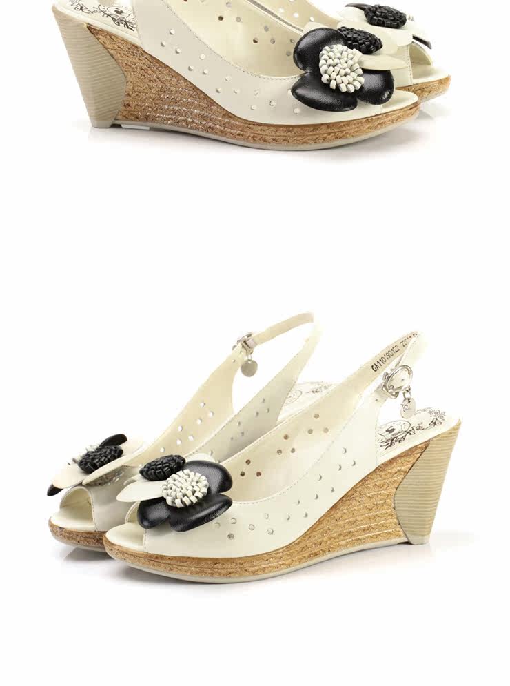!CAMEL駱駝 女鞋 淑女真皮花朵 舒適魚嘴坡跟女涼鞋