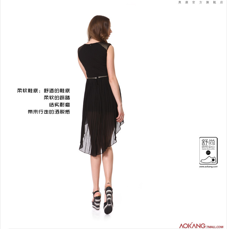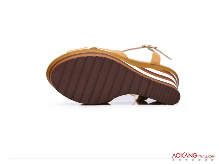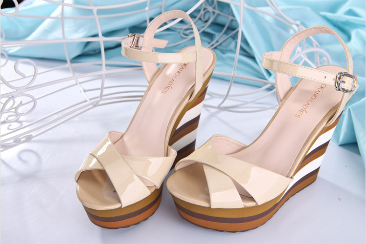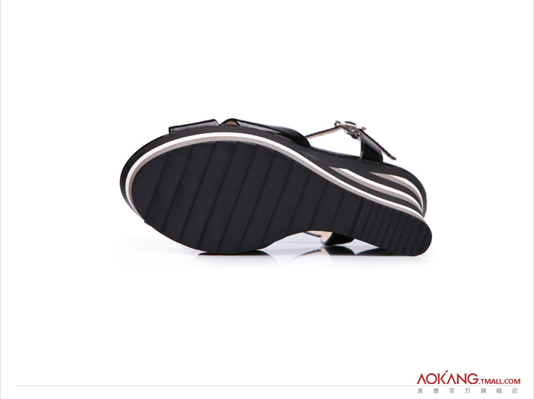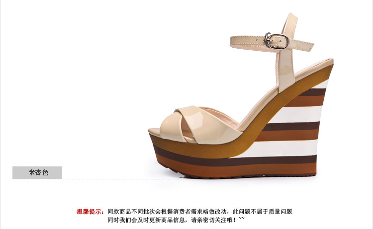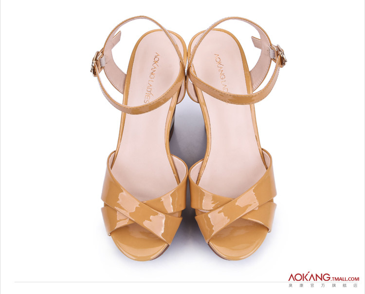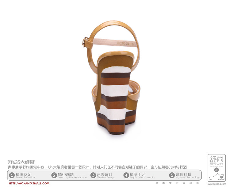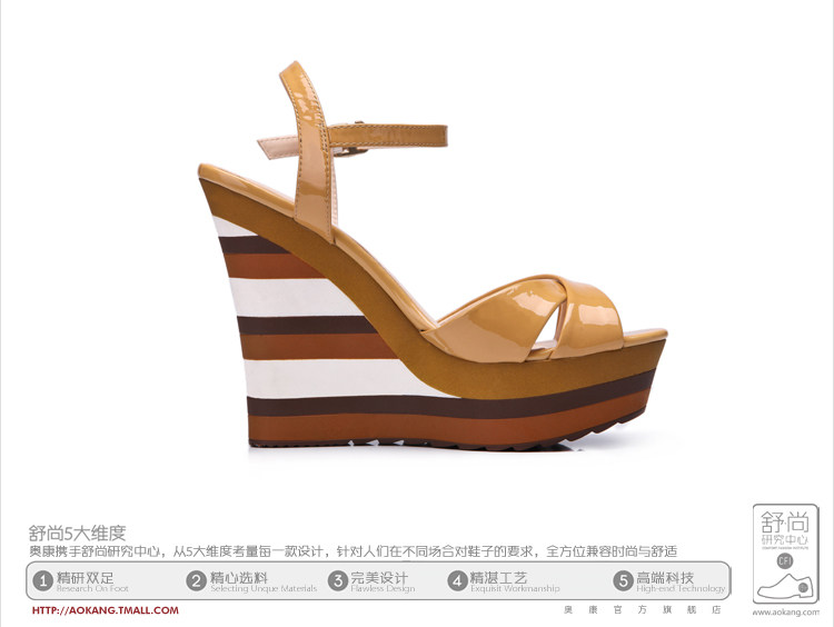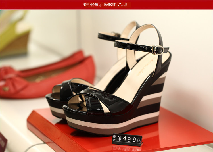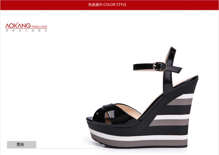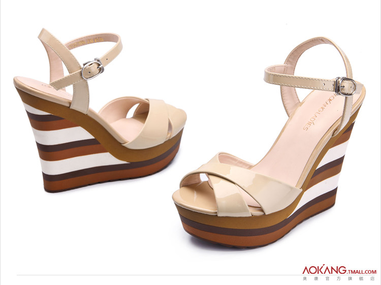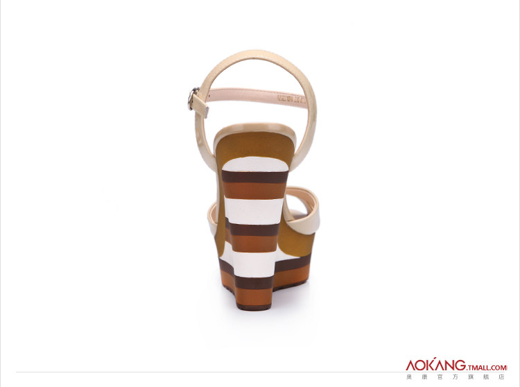 奧康 夏季女鞋 性感高跟 高級牛漆皮厚底條紋坡跟防水臺涼鞋1093