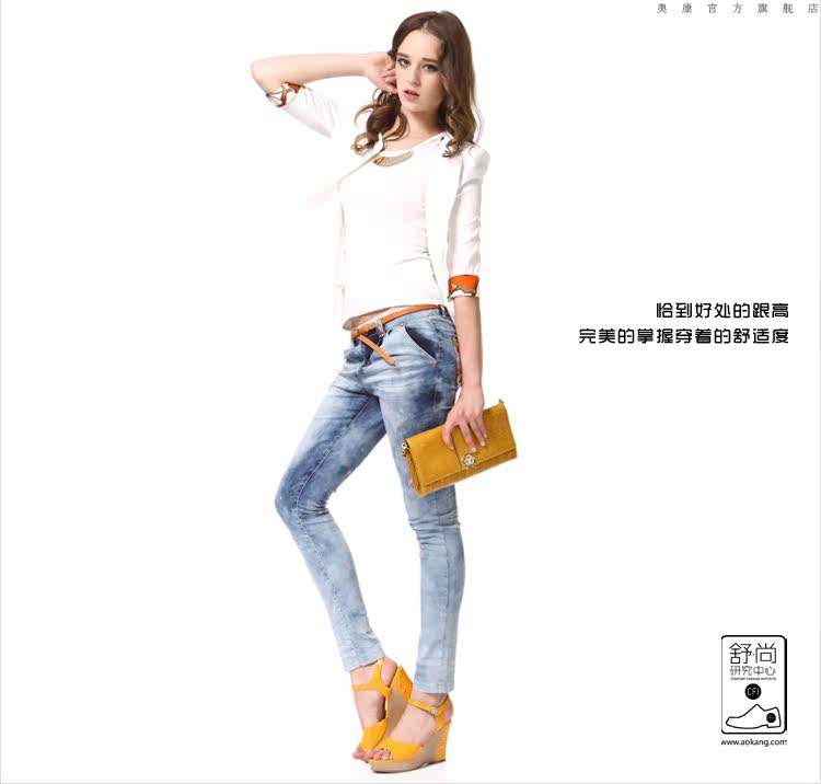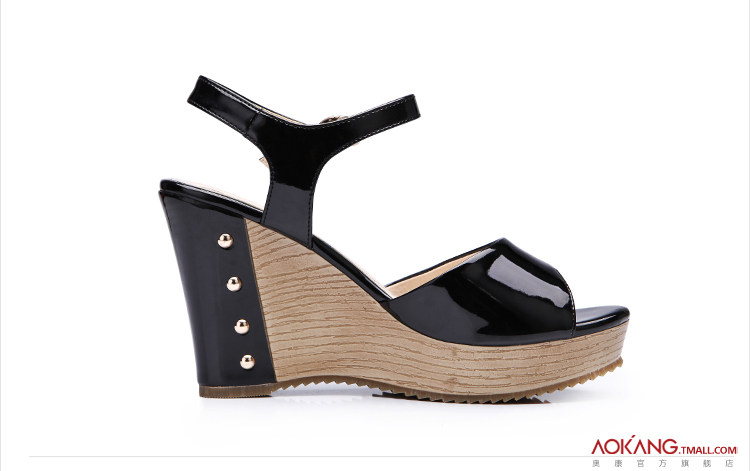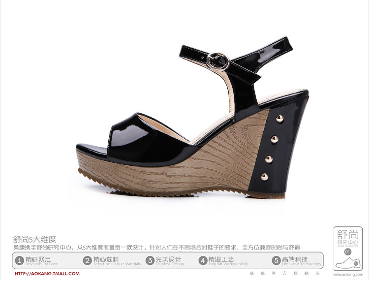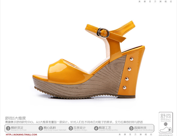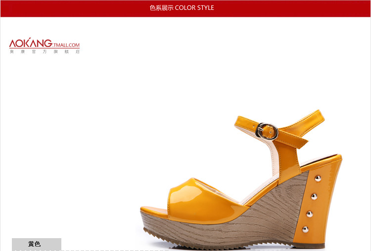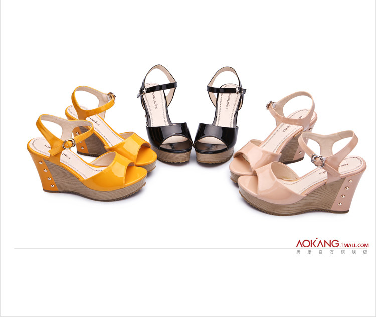 奧康 夏季女鞋 魚嘴鞋 鉚釘防水臺松糕鞋 羅馬坡跟厚底女涼鞋1067