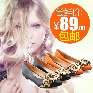 卡麗熙2012春款韓版尖頭坡跟低跟鞋豹紋金屬扣低幫鞋單鞋女鞋子
