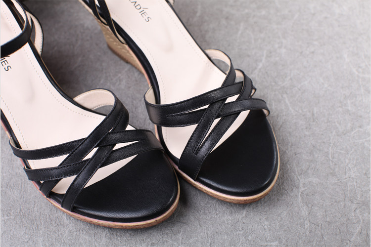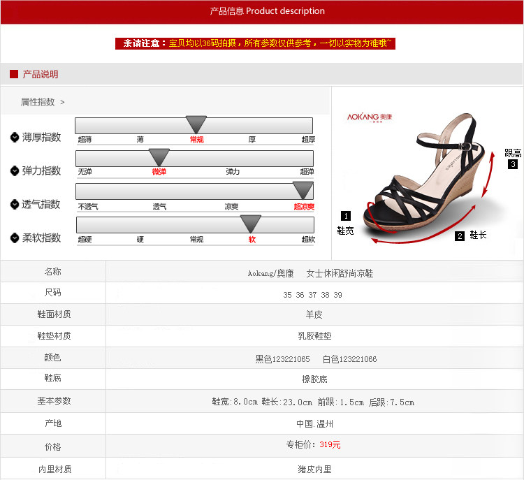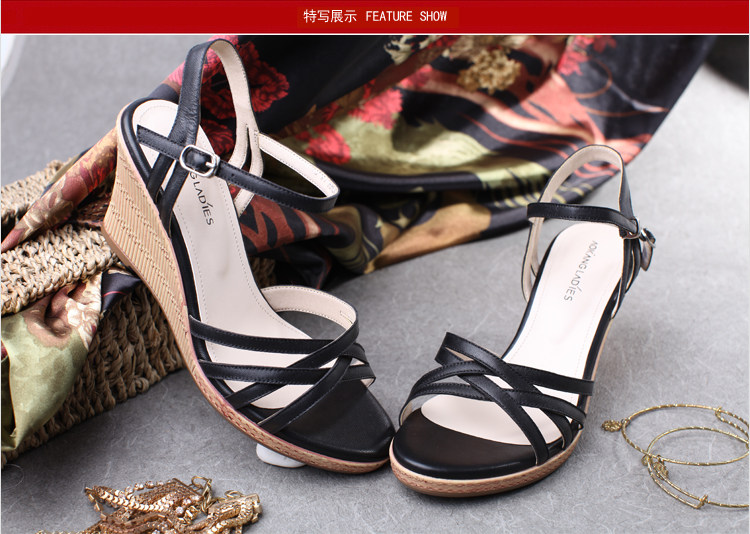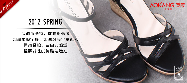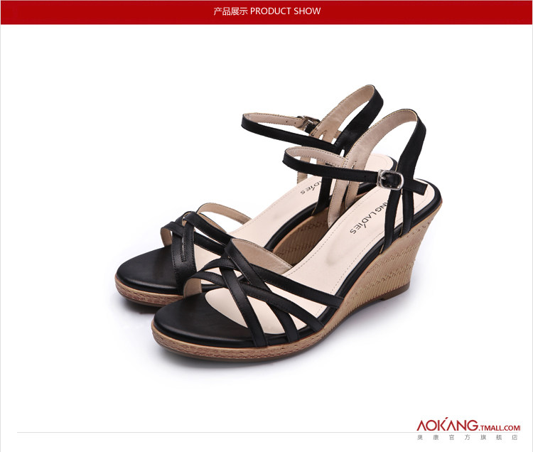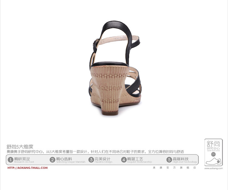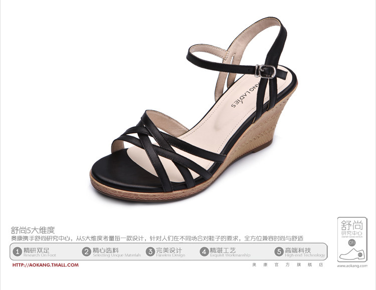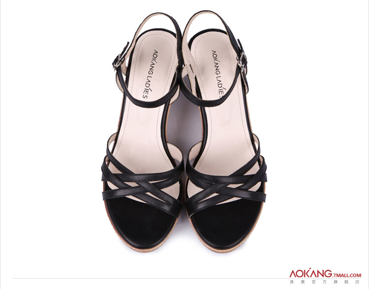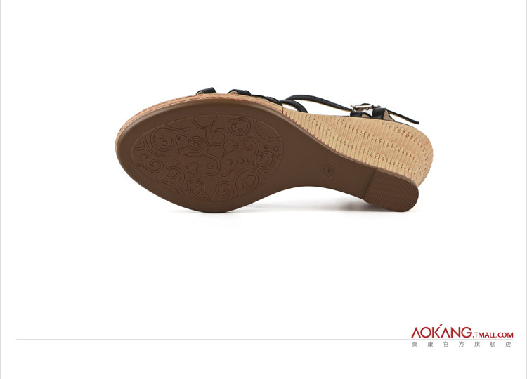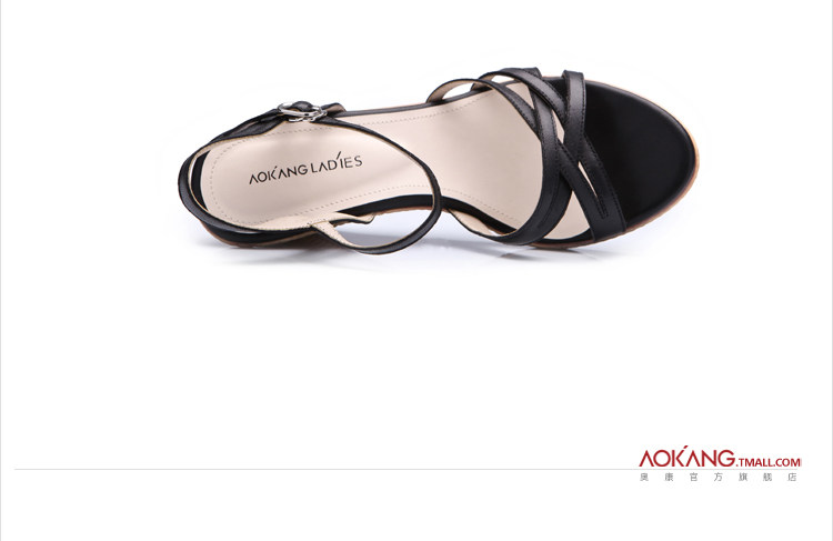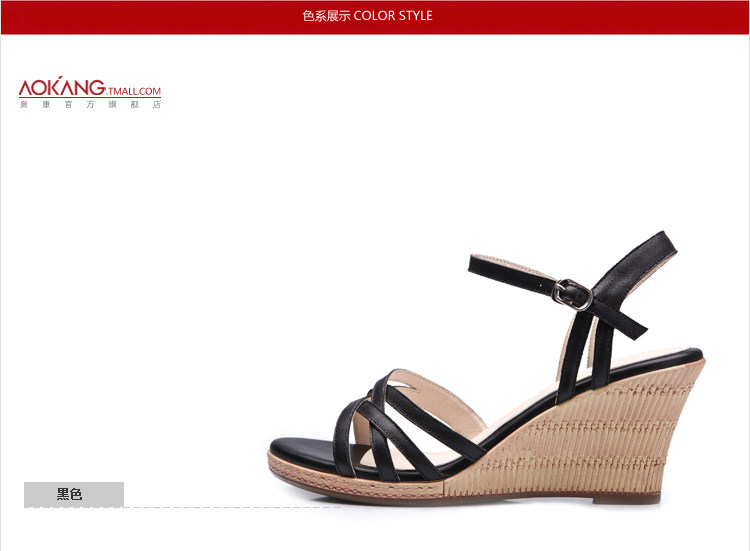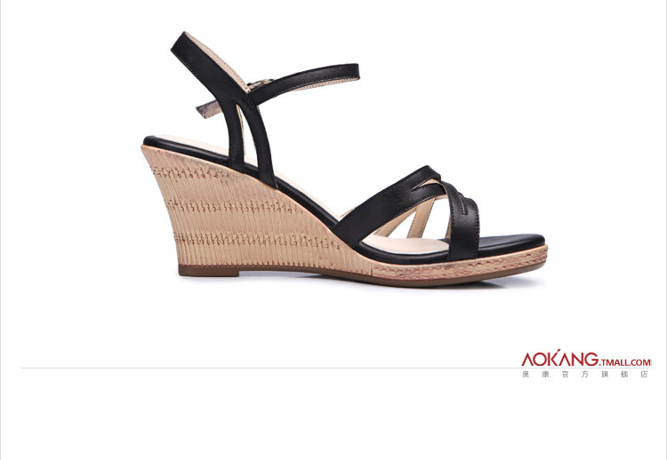 [質檢]Aokang/奧康 夏新款女鞋 黑色涼鞋 時尚百搭女涼鞋 1065