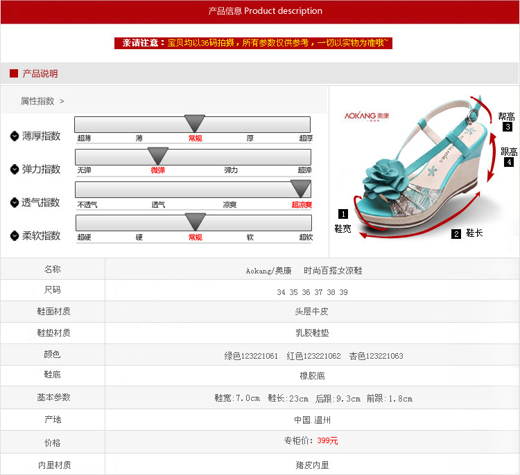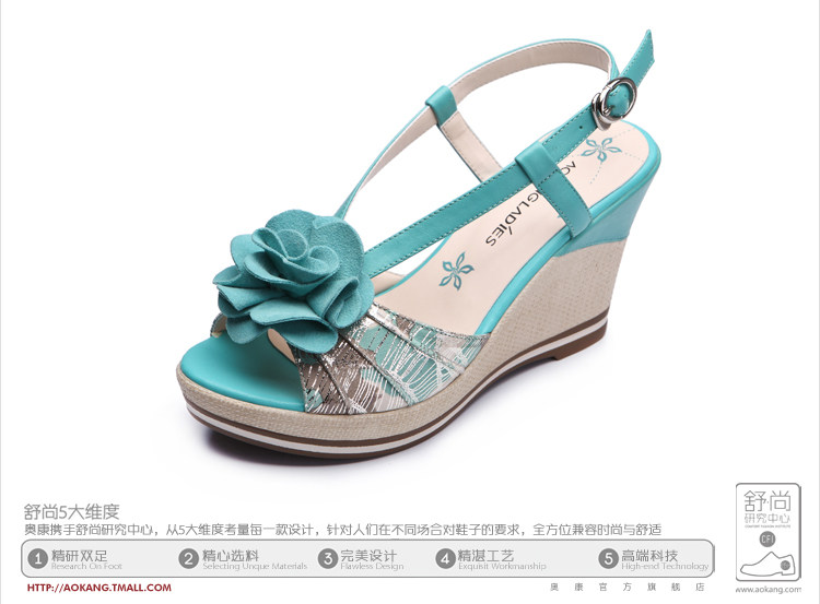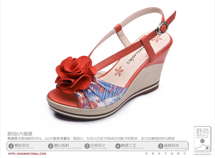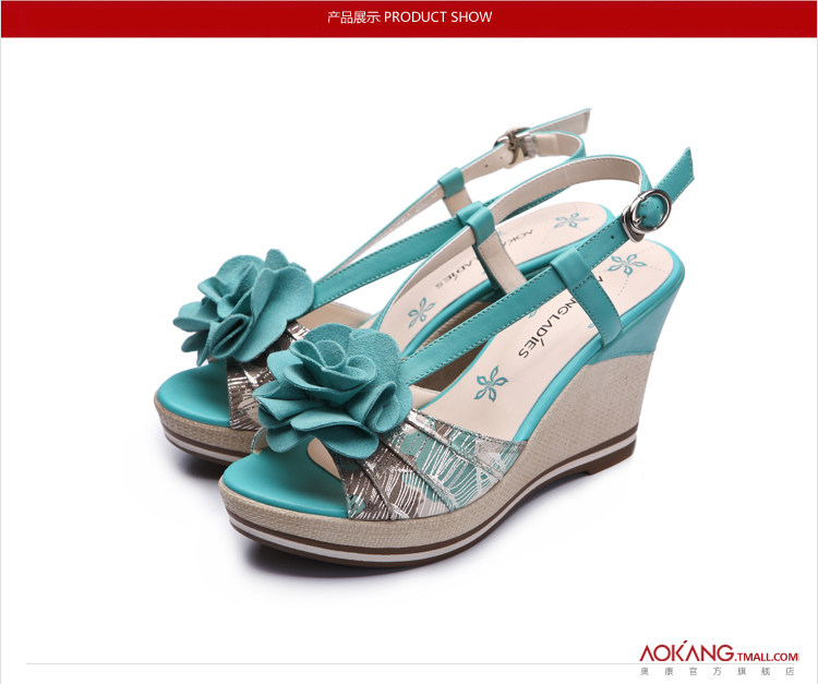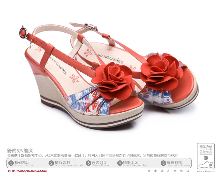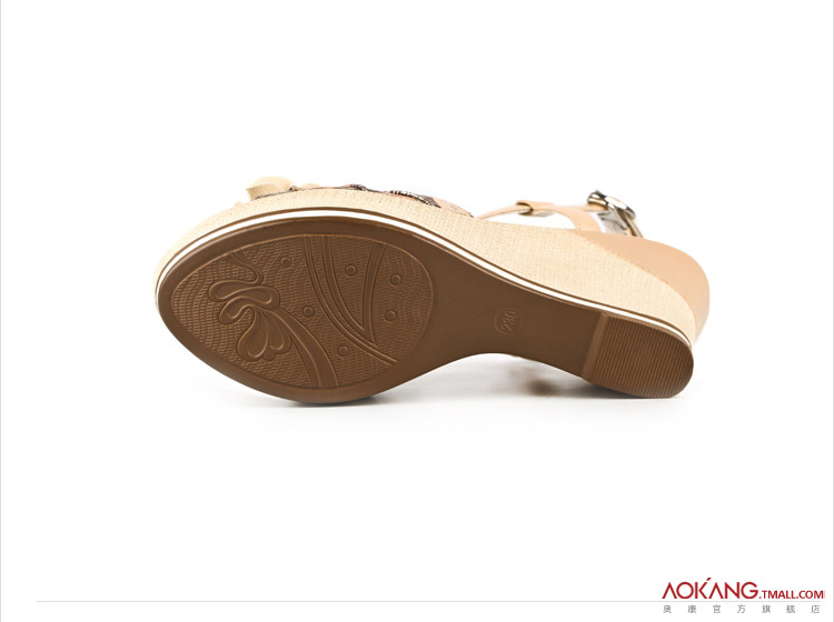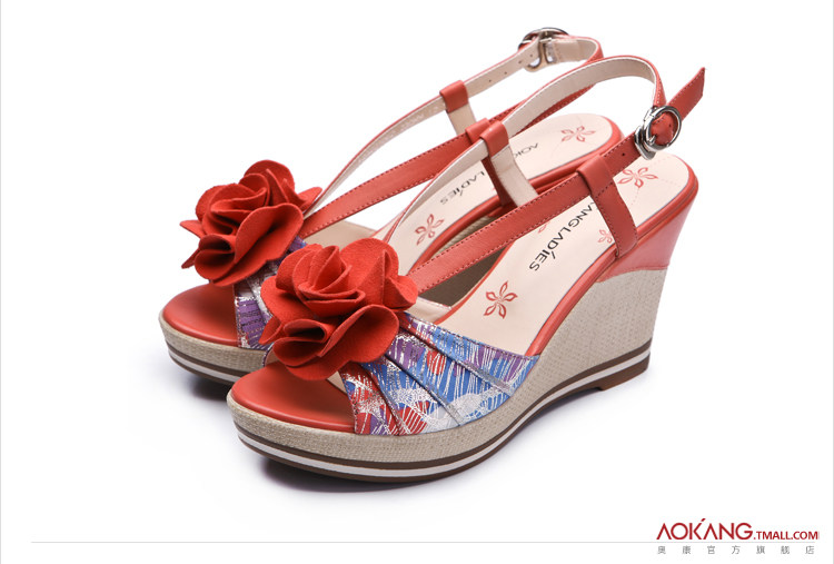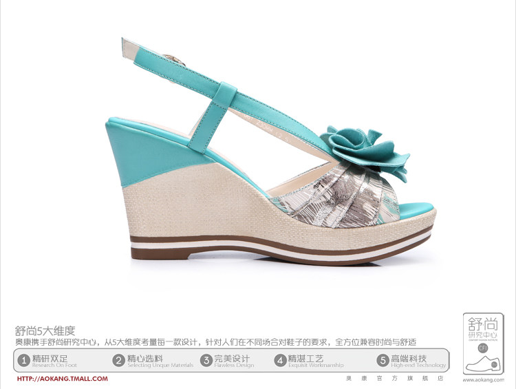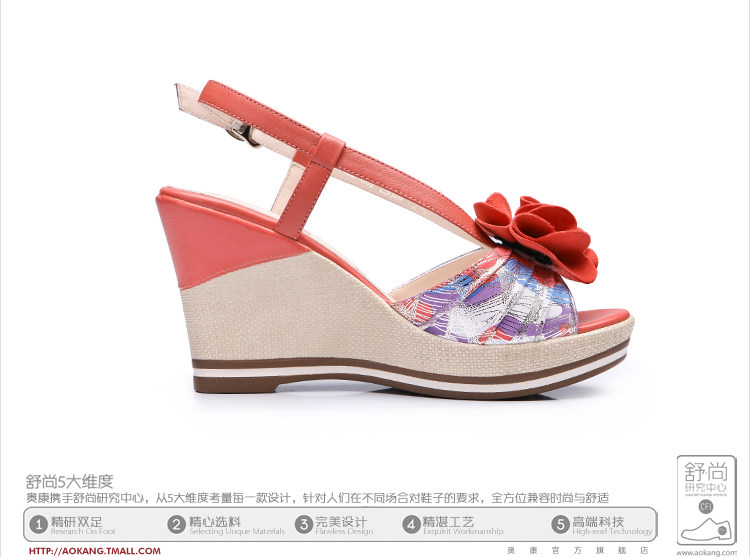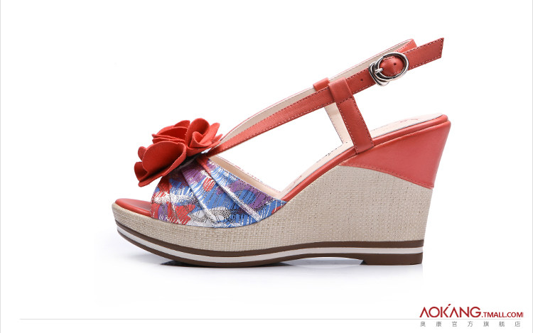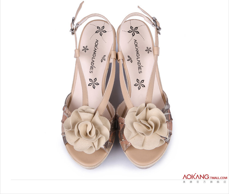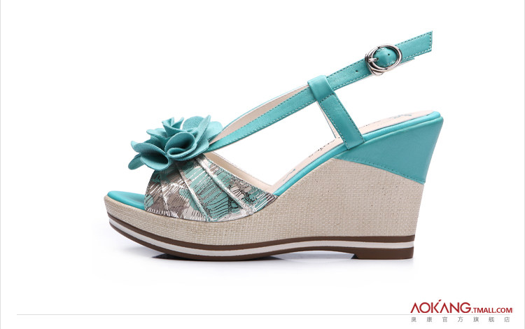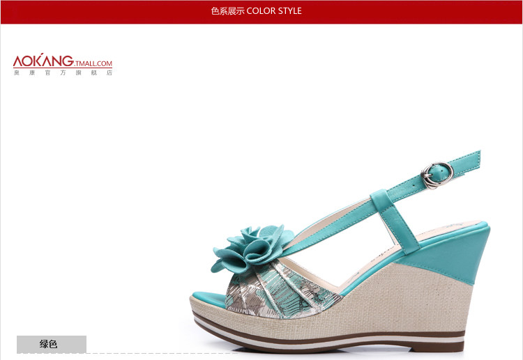 Aokang∕奧康 正品真皮 時尚百搭女涼鞋 休閑潮流 坡跟女鞋 1061