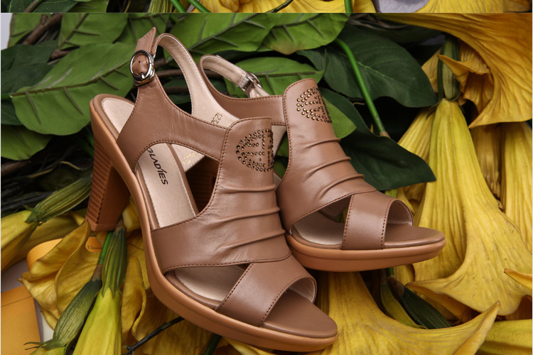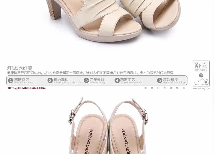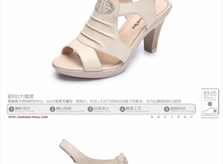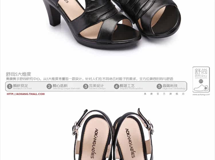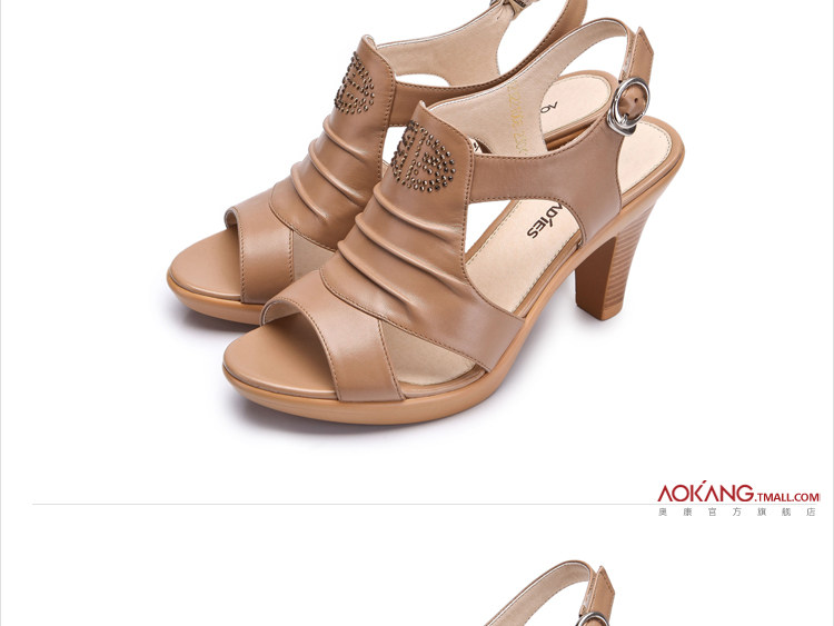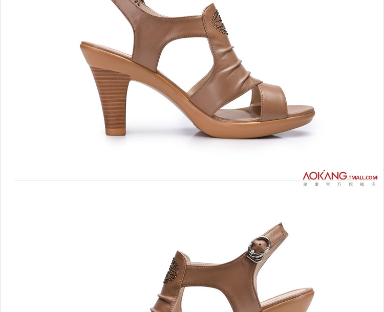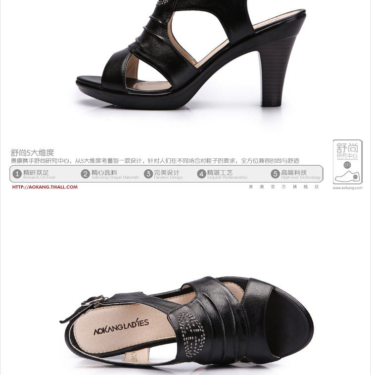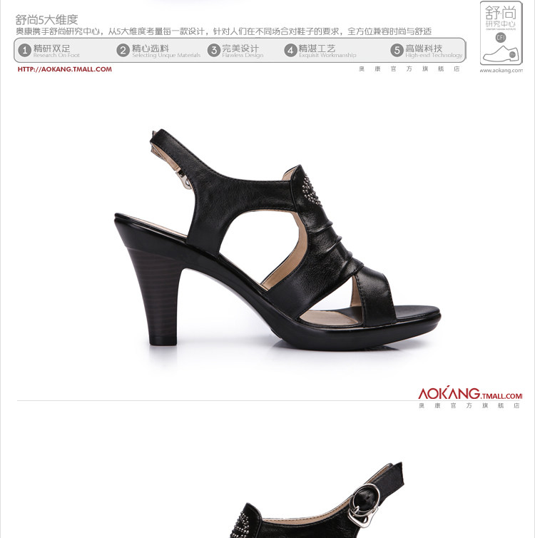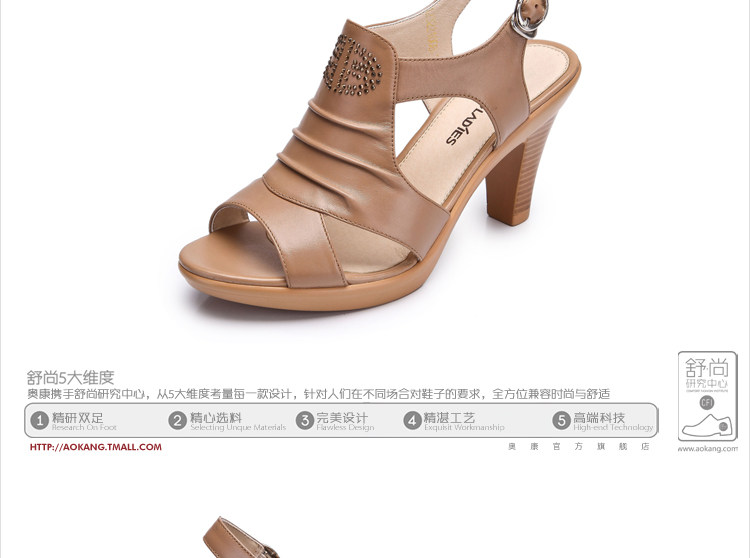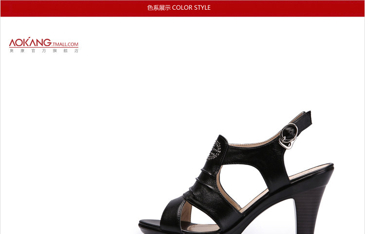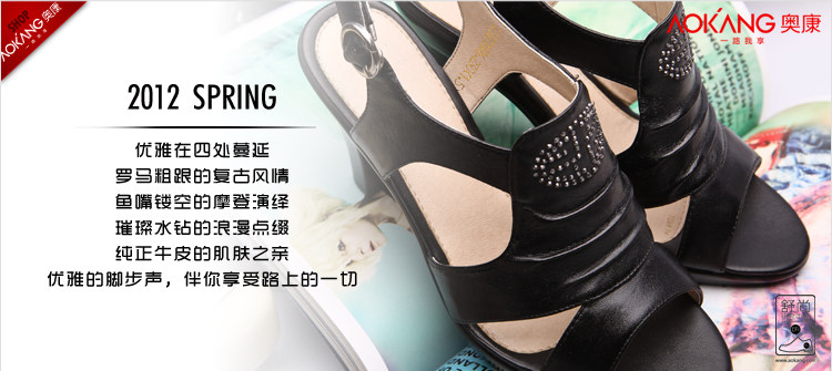 Aokang∕奧康 真皮女鞋 時尚高跟鞋 粗高跟涼鞋 2012新品 1006