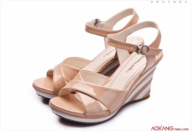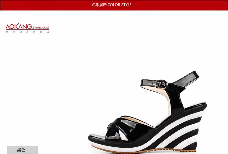 品牌特賣 Aokang/奧康 夏新款涼鞋 防水臺坡跟厚底鞋女鞋 1072