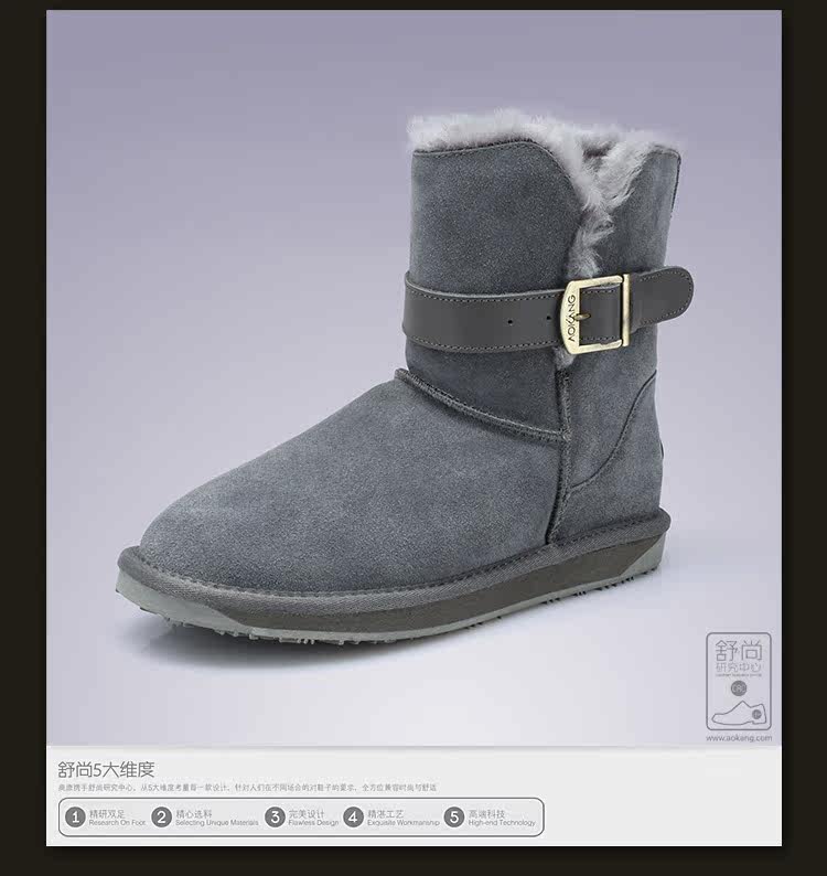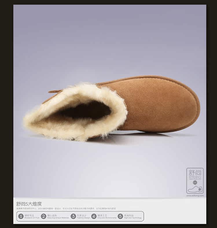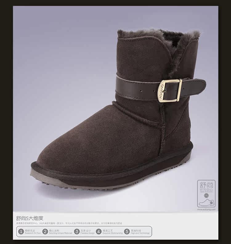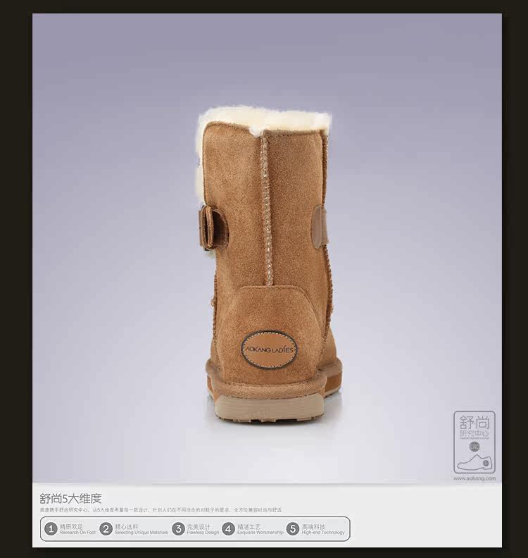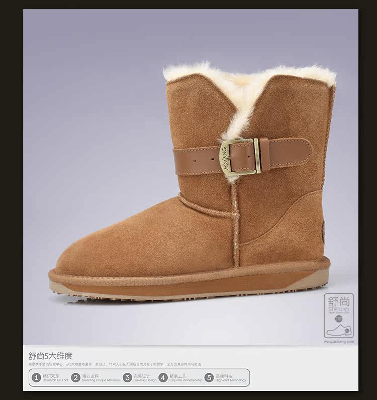供應 AOKANG LADIES/奧康女鞋 雪地靴2012冬靴二層牛皮中筒靴女靴