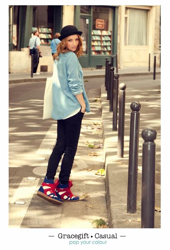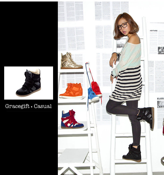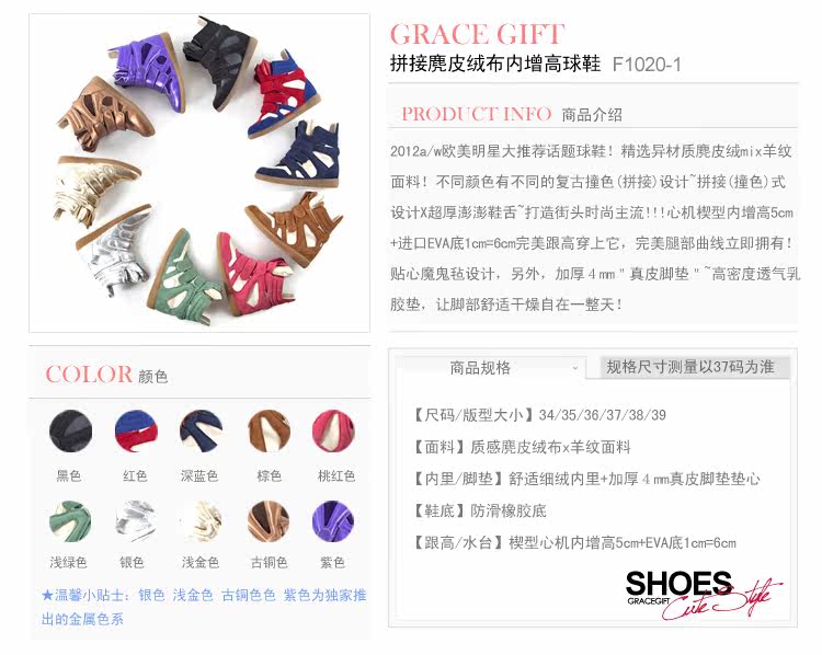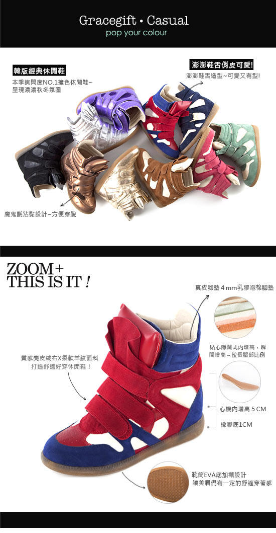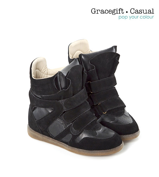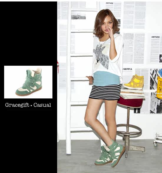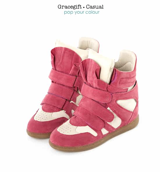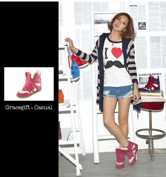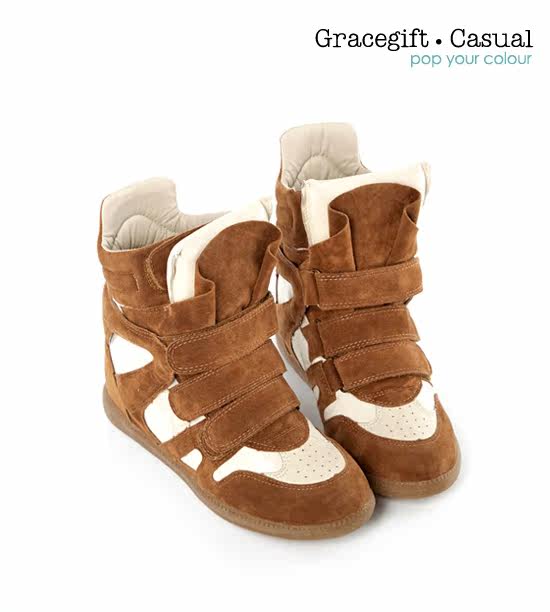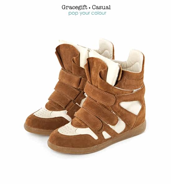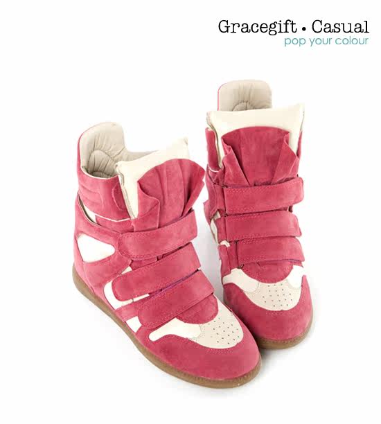 供應Gracegift 韓版麂皮絨布女鞋 內增高鞋 高幫休閑鞋 F1020-1