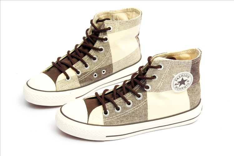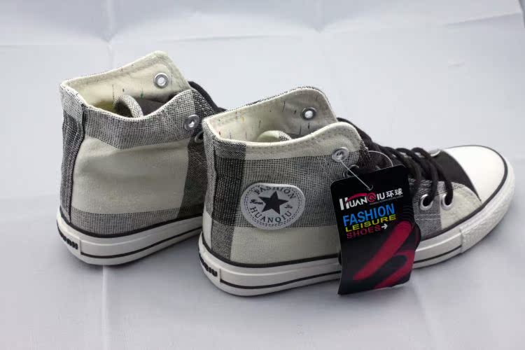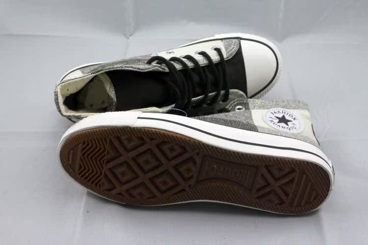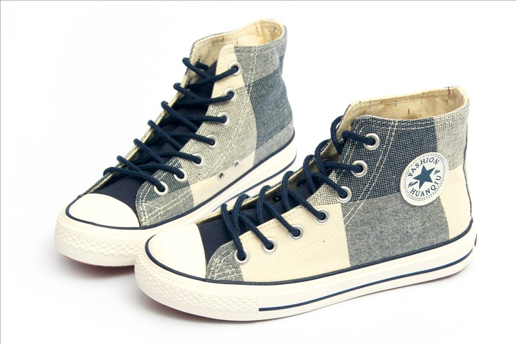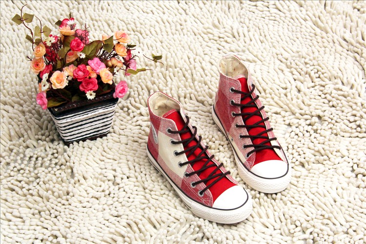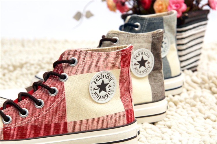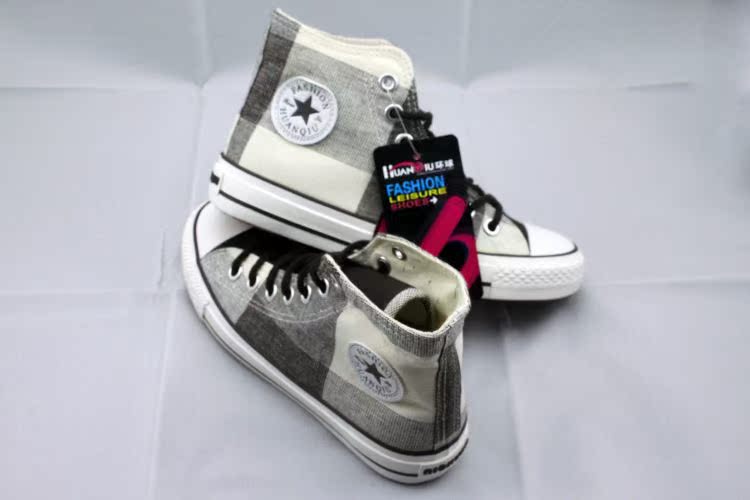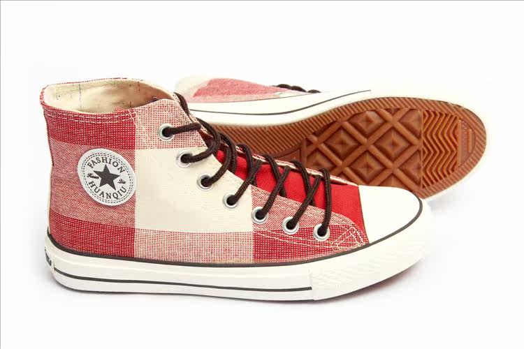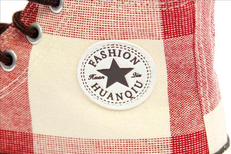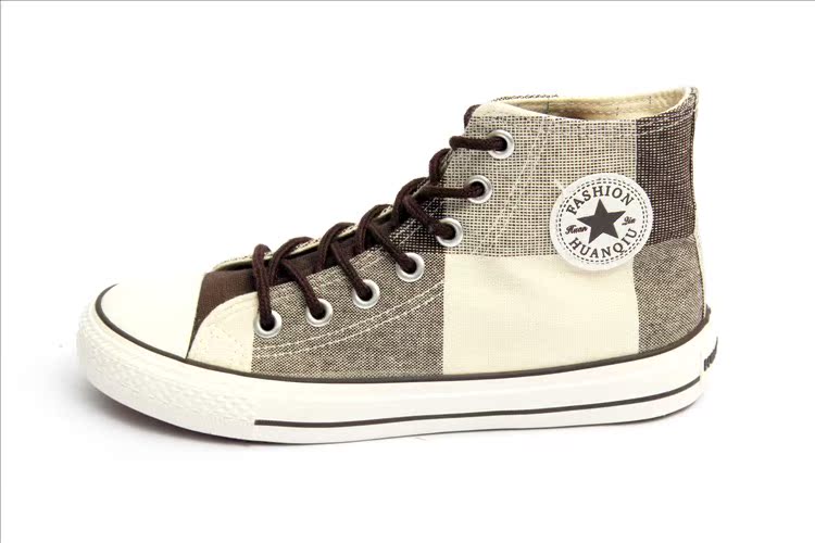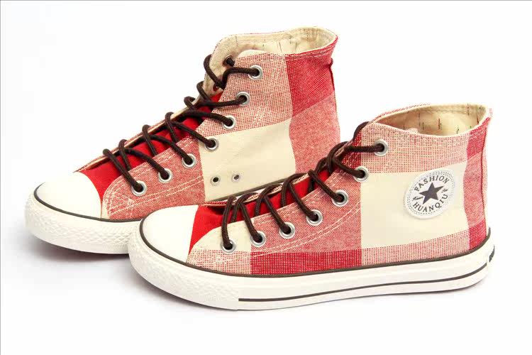 環球 五角星拼色高幫經典百搭格子帆布鞋 女鞋 韓版休閑鞋女 潮鞋