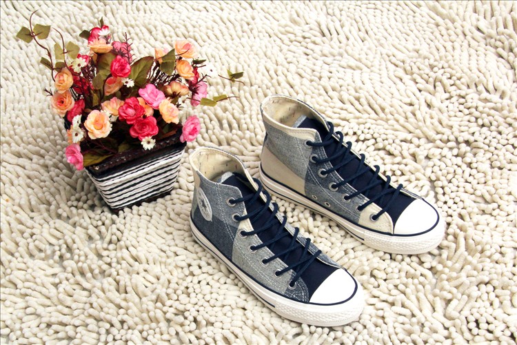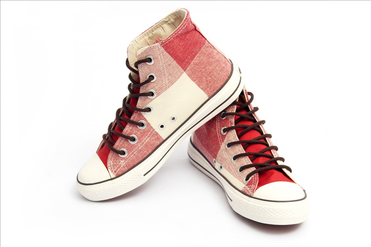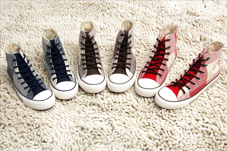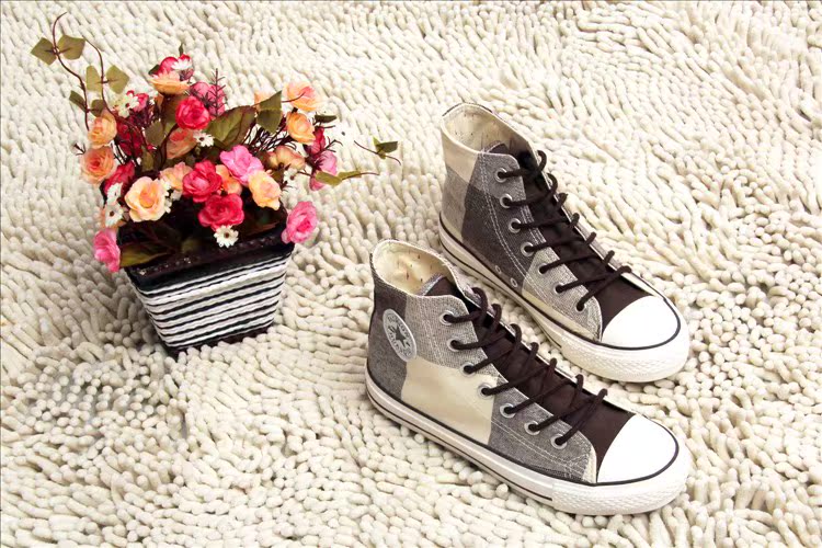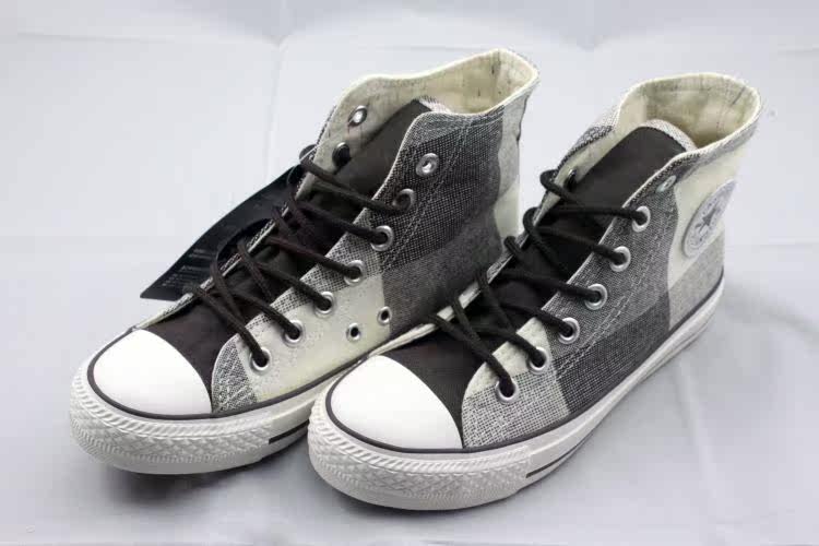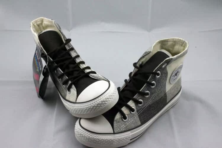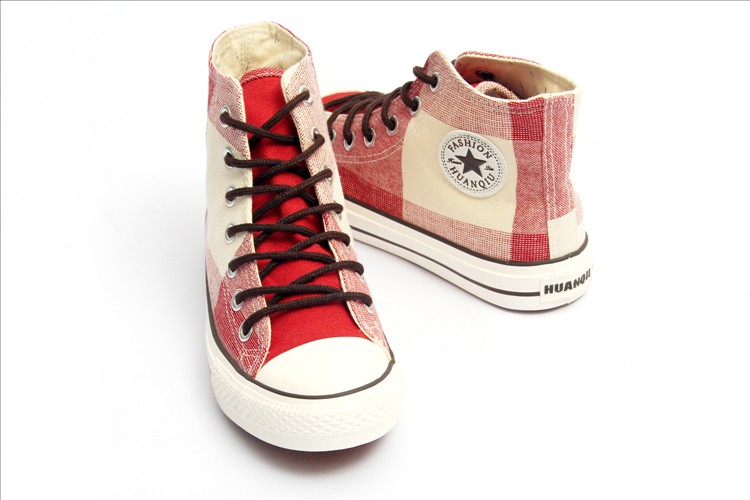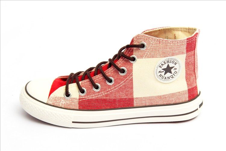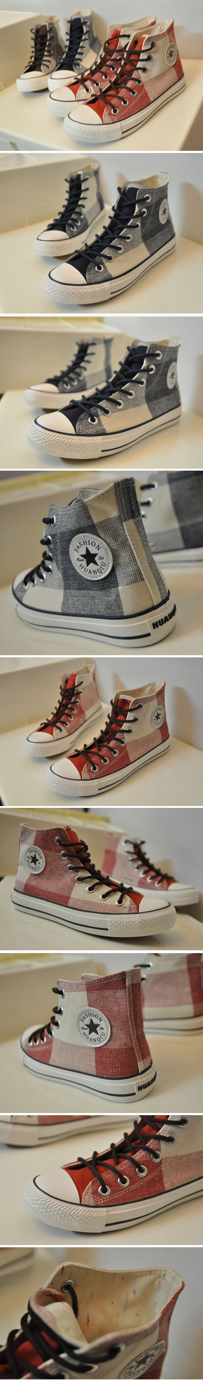 環球 五角星拼色高幫經典百搭格子帆布鞋 女鞋 韓版休閑鞋女 潮鞋