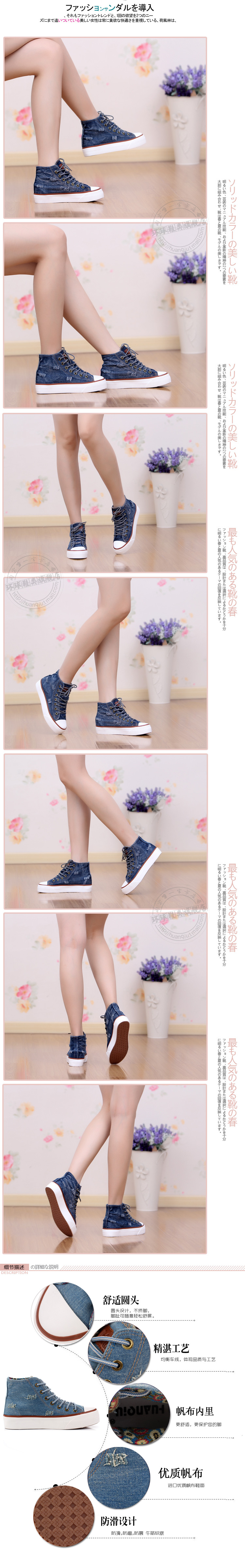 批發一路發提供客戶日本、大陸、香港、歐美環球 水洗牛仔布破洞 高幫增高底帆布鞋女鞋 韓版時尚休閑鞋 潮鞋批發、進口、代購的物流整合服務,針對機械、電子、半導體的零組件或機台設備等特殊性需客製化產品,我們也有各家工廠配合的専業工程師可回覆您的專業性問題。