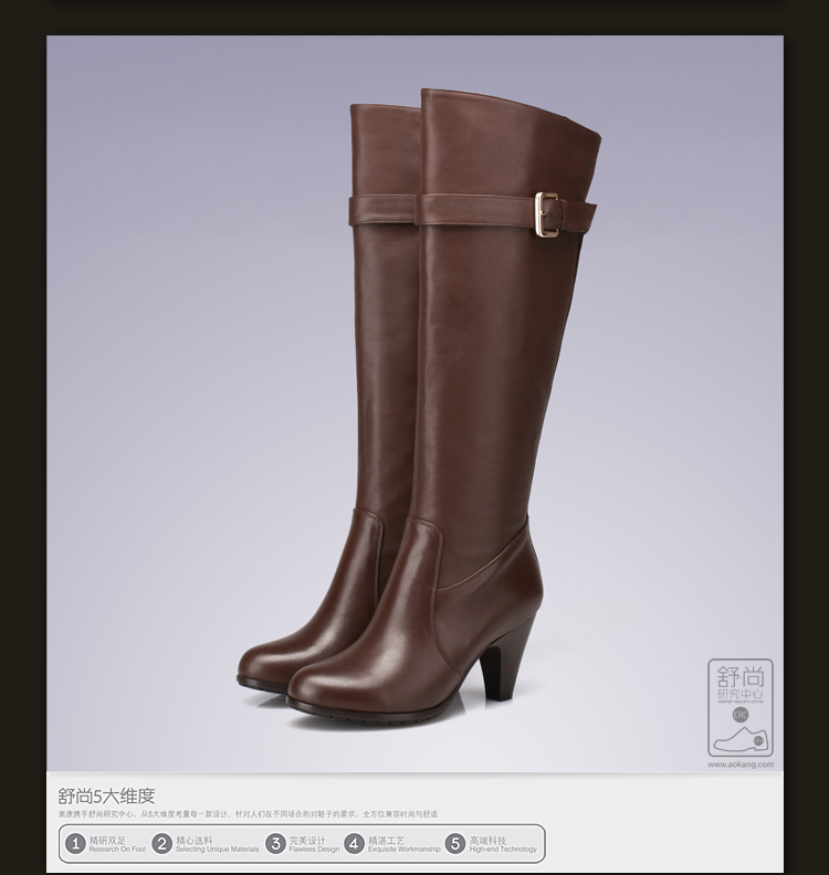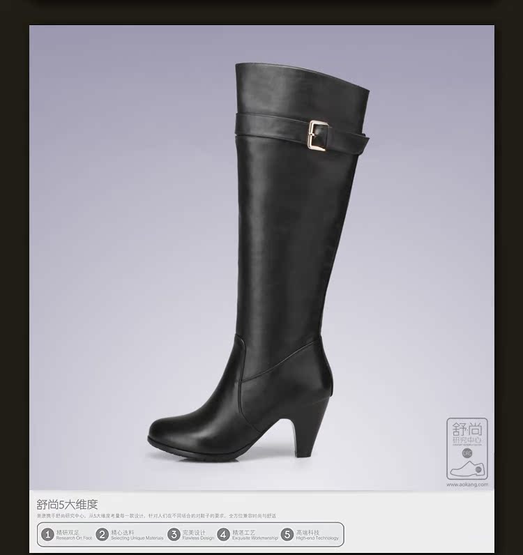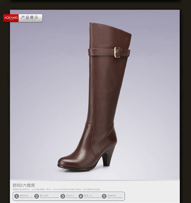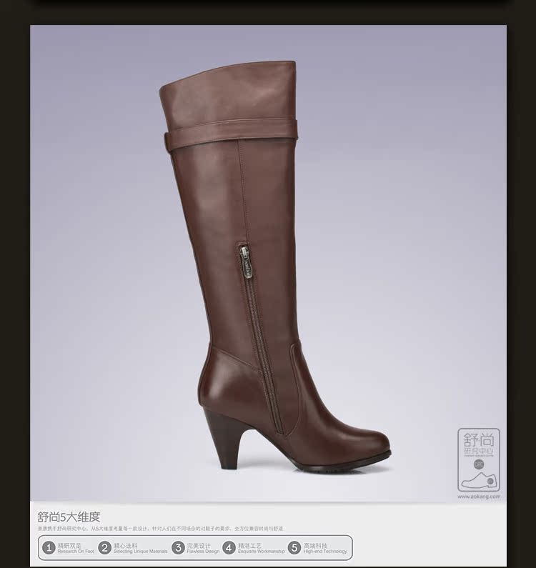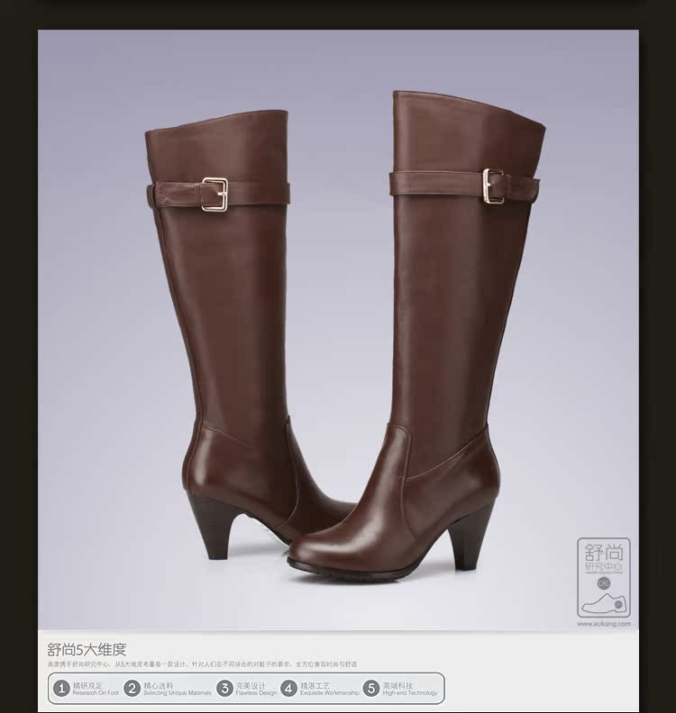 供應 AOKANG LADIES/奧康女鞋 冬款高筒靴騎士靴 真皮粗跟高跟女靴子