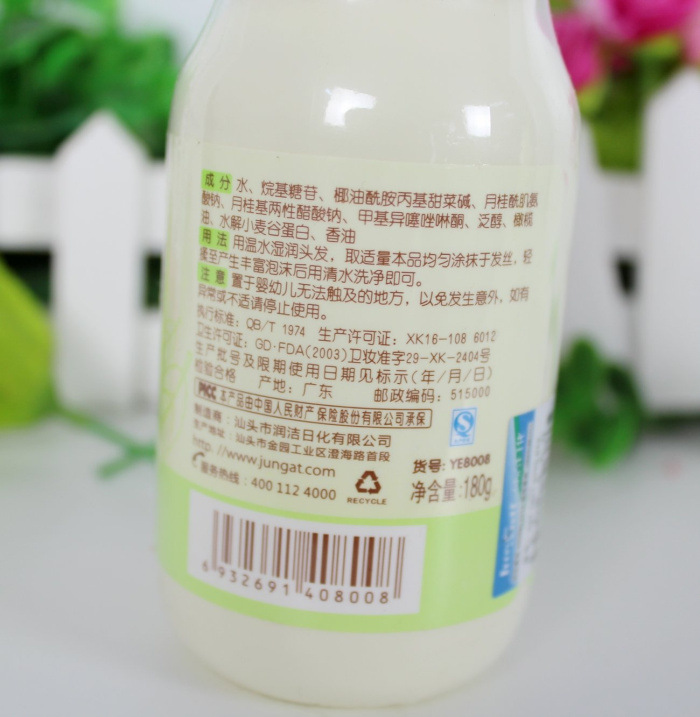 成分:水、烷基糖苷、椰油酰胺丙基甜菜堿、月桂酰基氨酸鈉、月桂基兩性臘酸鈉、甲基異噻唑啉酮、泛醇、橄欖油、蜂蜜提取物、冬青葉提取物、香油