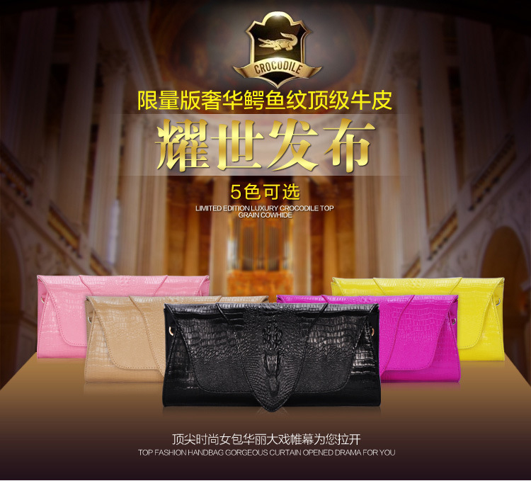 新款鱷魚紋女包 真皮手拿包歐美奢華大牌單肩包 牛皮包包 女士